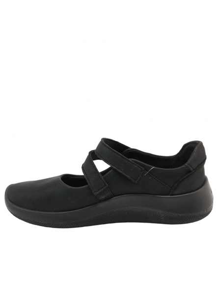 Descripción: Bailarina mujer Arcopedico NAHANI de licra negra elástica aspecto nubuck,reciclada, vegana e hidrofugada. Piso de poliuretano inyectado con sistema de doble arco lateral para mejorar el apoyo.