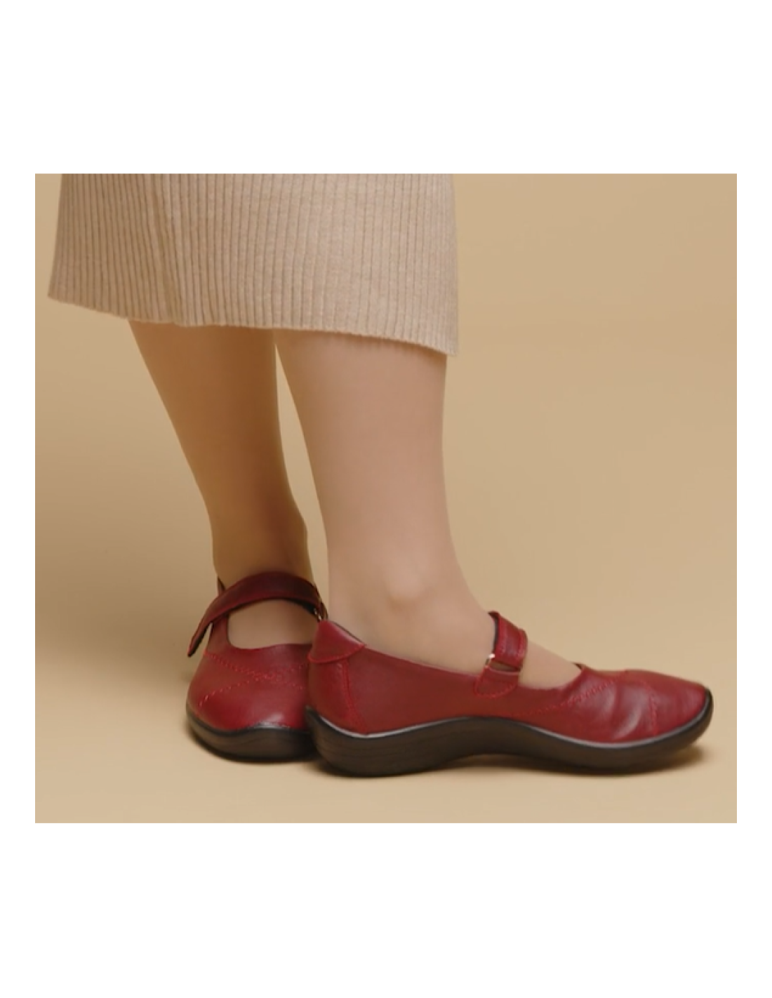 Descripción: Bailarina mujer Arcopedico TRIGLAV de licra roja elástica aspecto piel lisa, reciclada, vegana e hidrofugada. Ajuste velcro. Piso de poliuretano inyectado con sistema de doble arco lateral para mejor