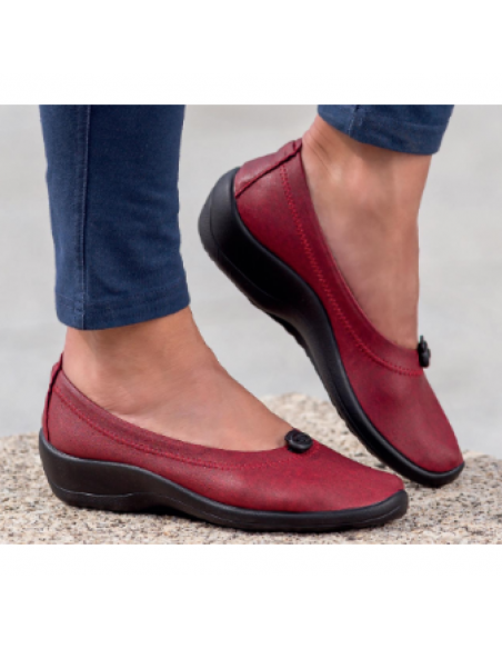 Descripción: Bailarina mujer Arcopedico CABRERA de licra roja elástica aspecto piel lisa, reciclada, vegana e hidrofugada. Ajuste elástico. Piso de poliuretano inyectado con sistema de doble arco lateral para mejorar el apoyo.