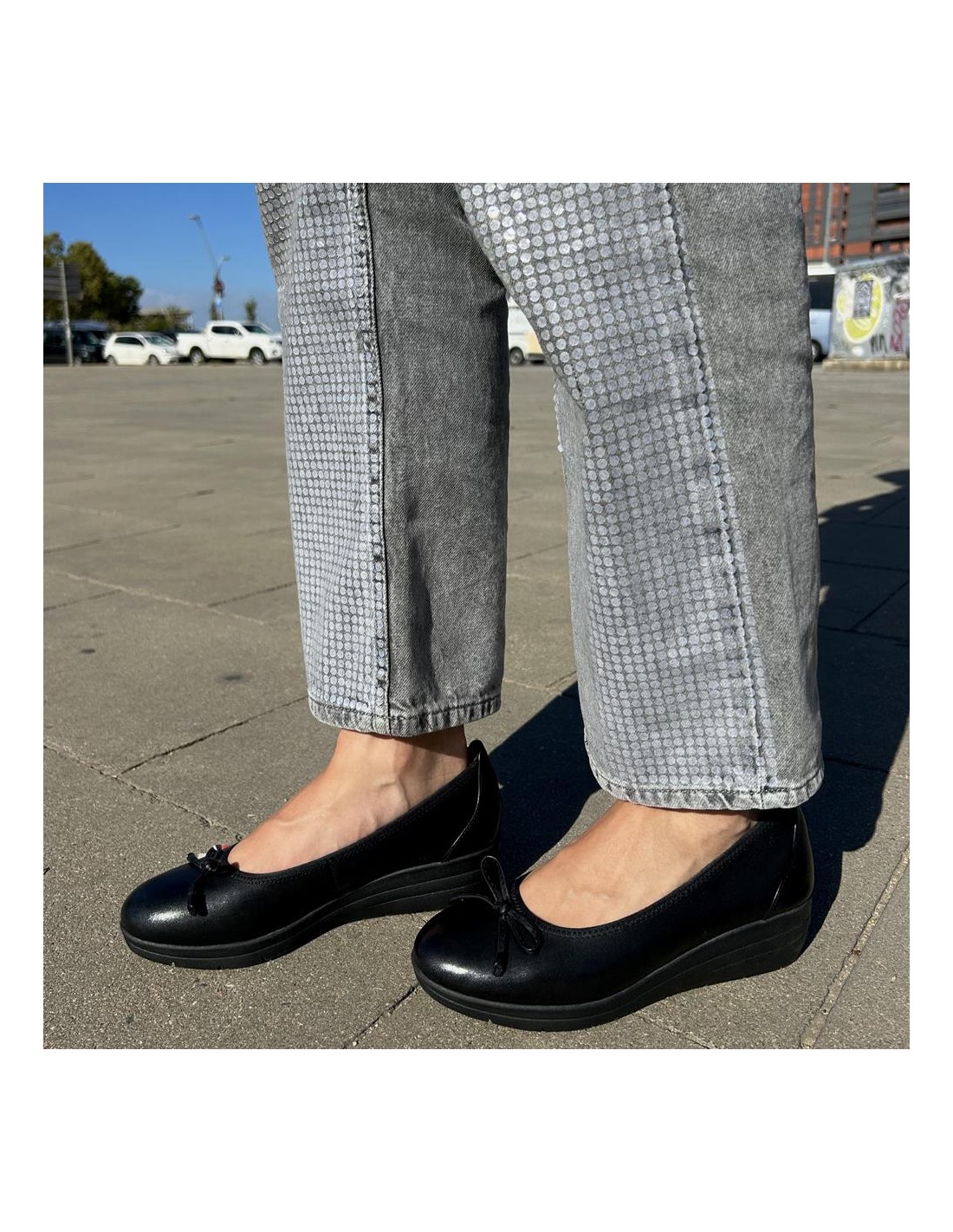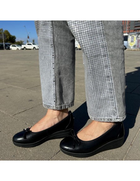Descripción: Bailarina mujer 82104 de TAMARIS CONFORT en piel negra y detalle lazo. Plantilla anatómica extraible. Ajuste elástico. Cómoda cuña flexible y antideslizante.