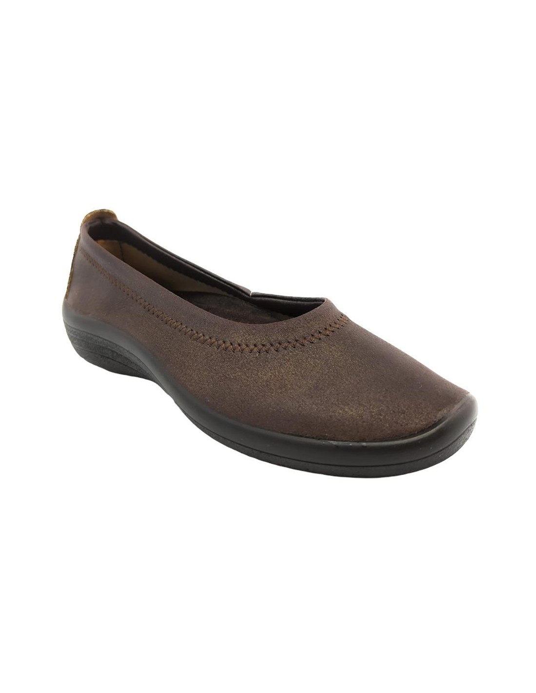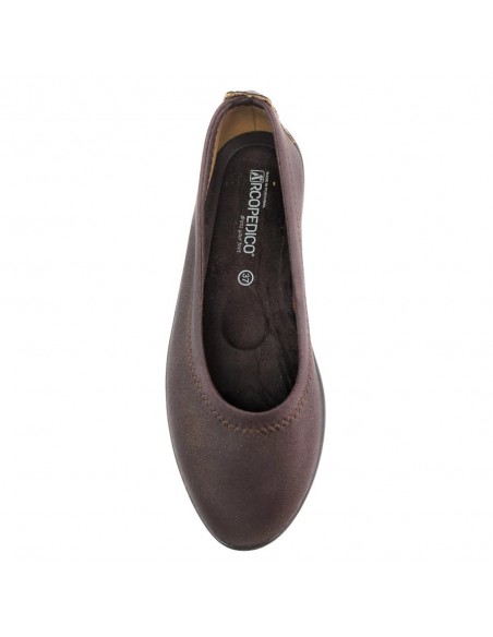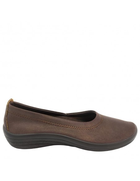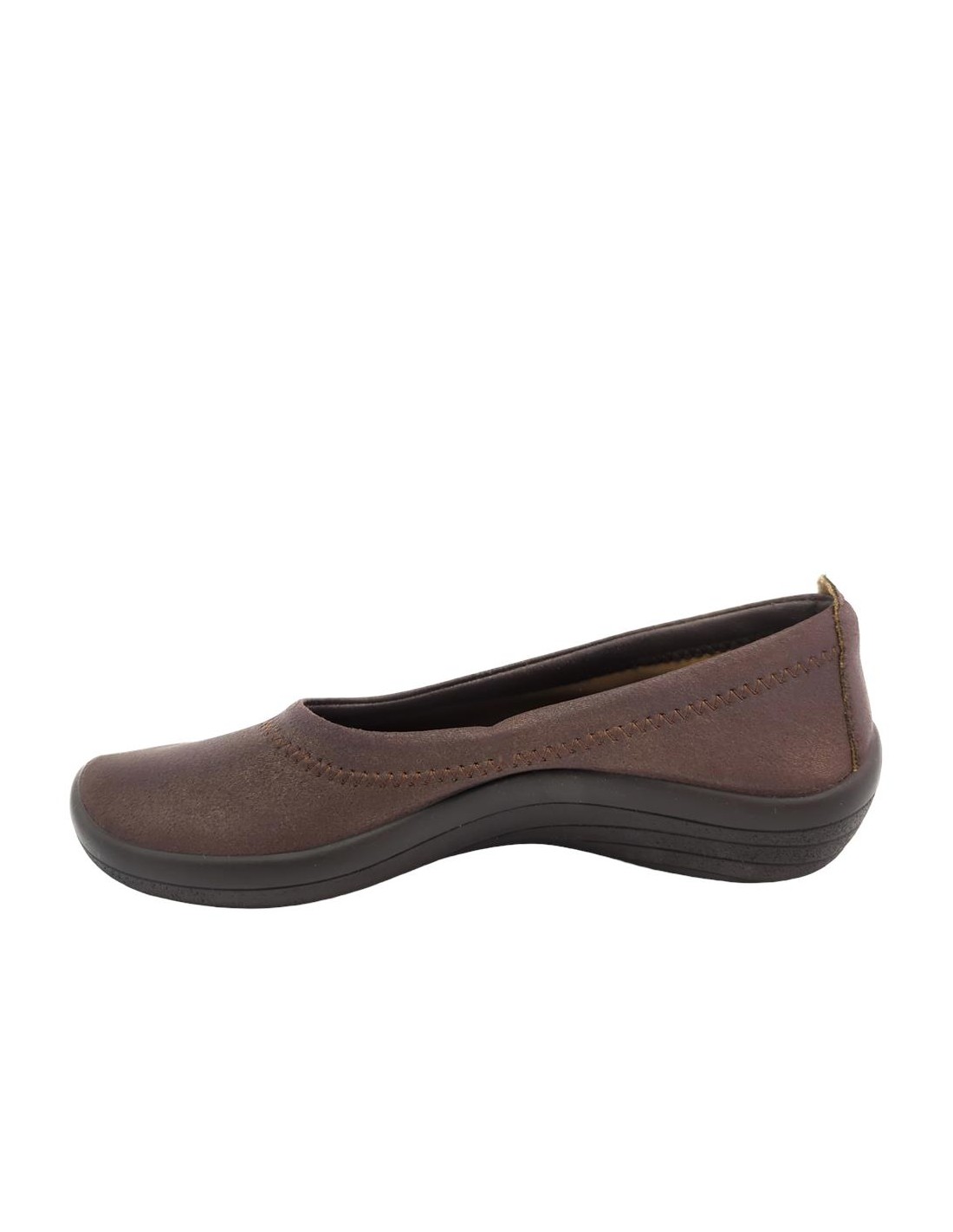 Descripción: Bailarina mujer Arcopedico GAUJA de licra bronce elástica aspecto piel lisa, reciclada, vegana e hidrofugada. Piso de poliuretano inyectado con sistema de doble arco lateral para mejorar el apoyo.