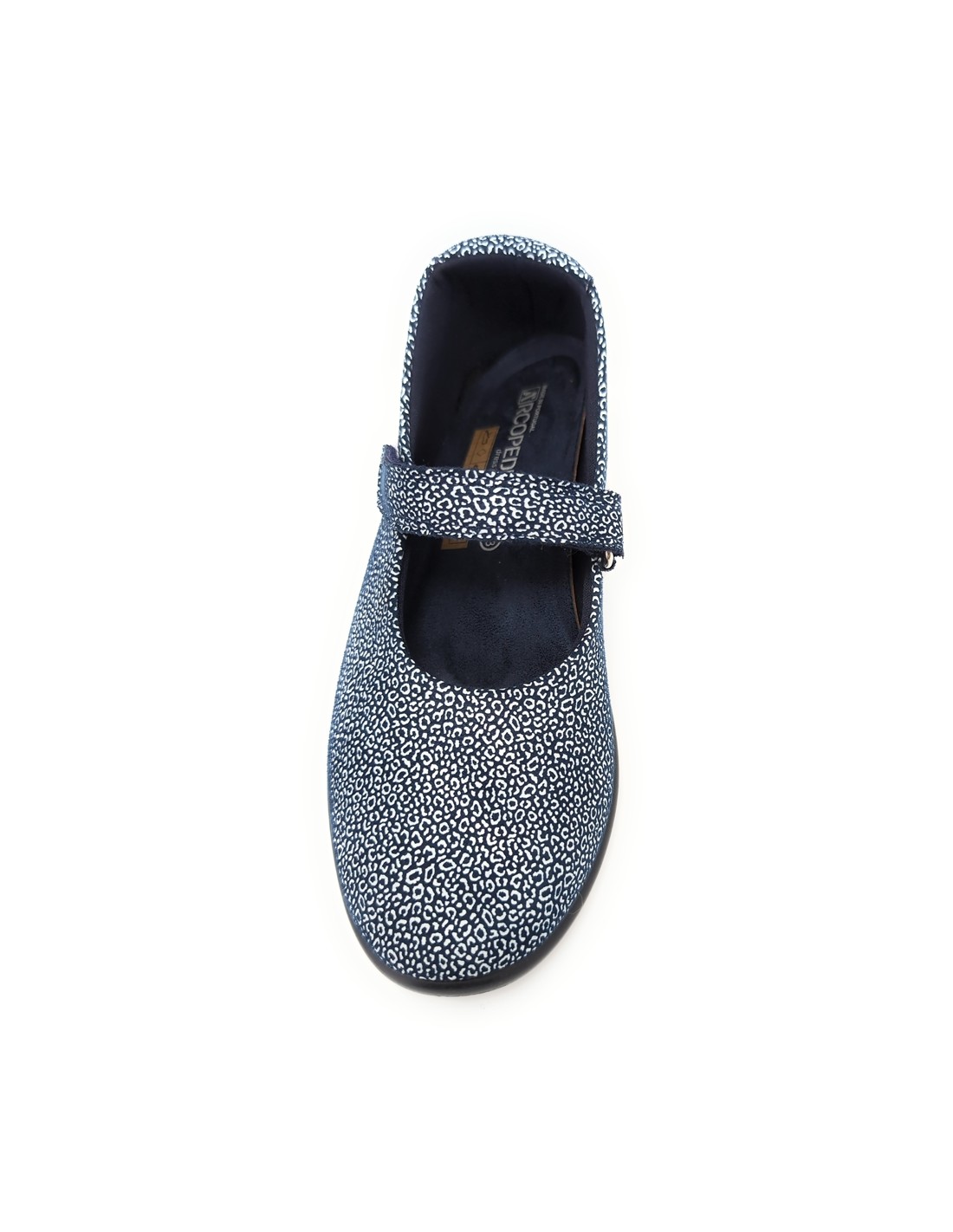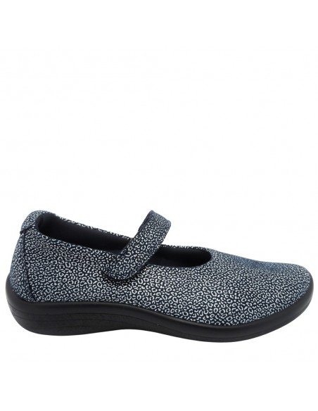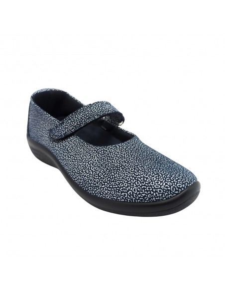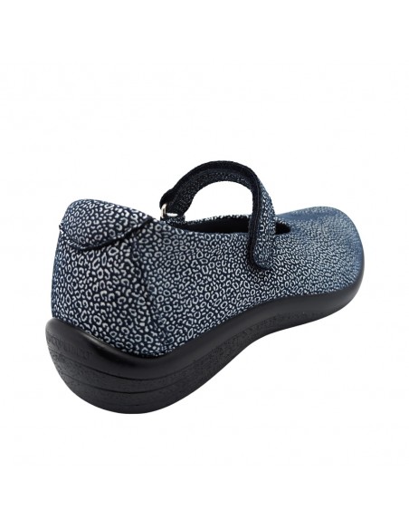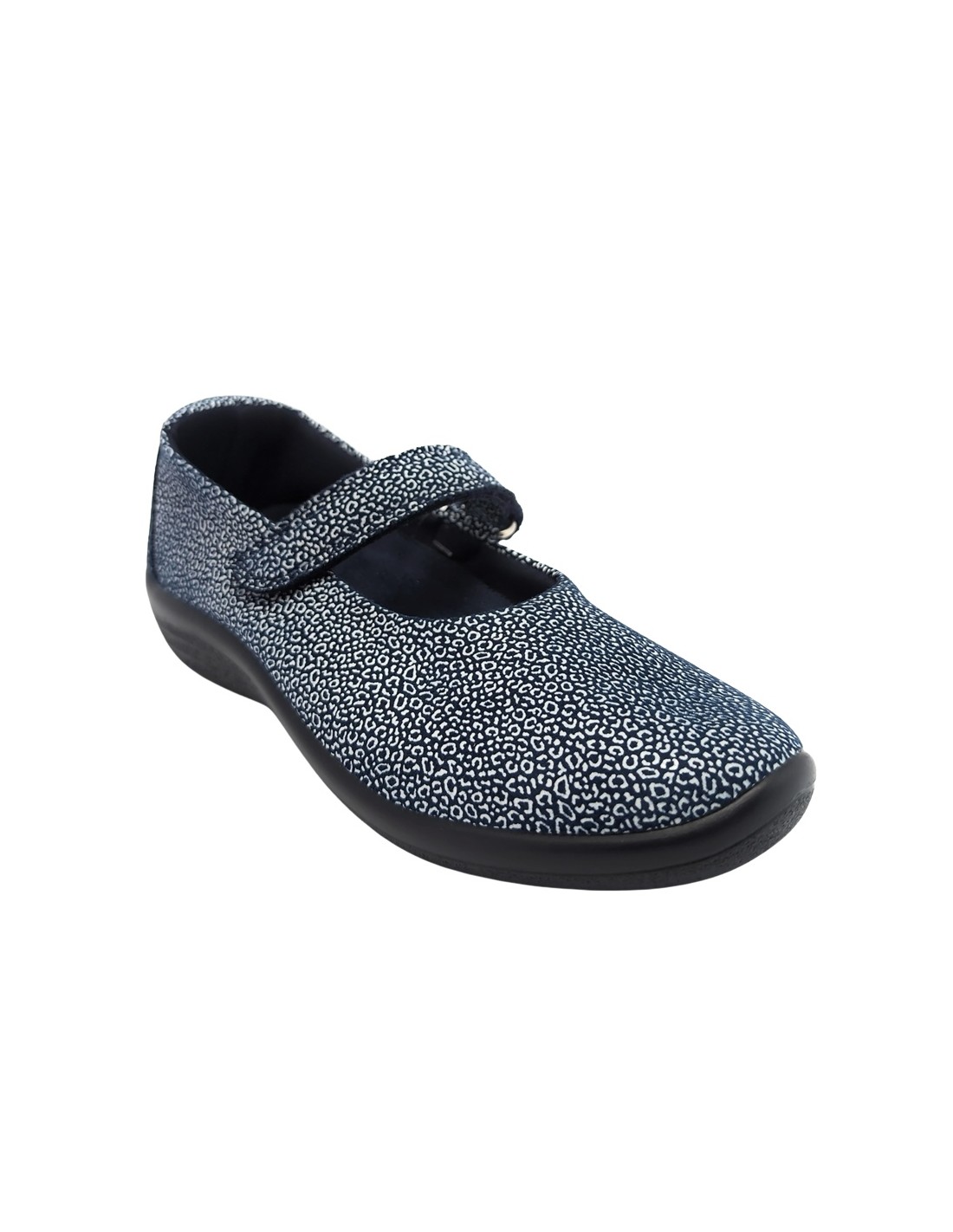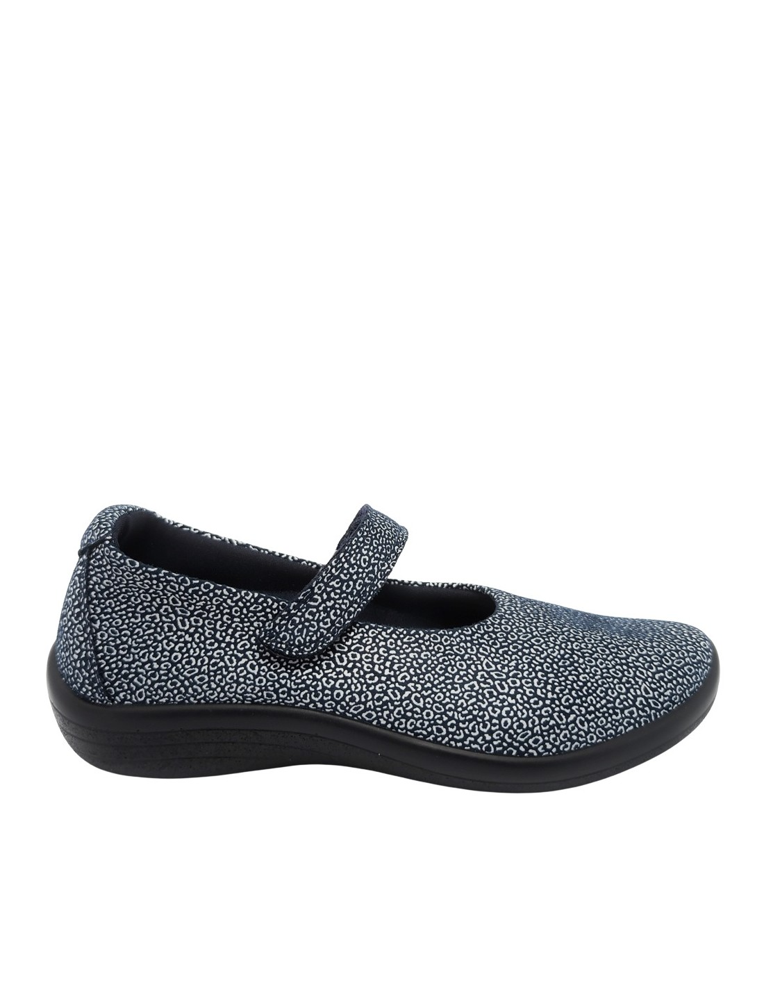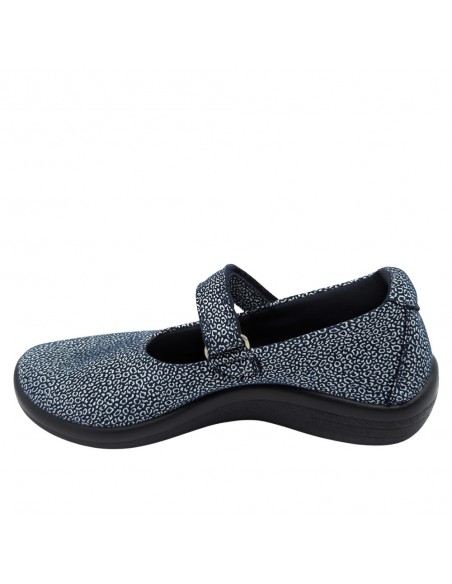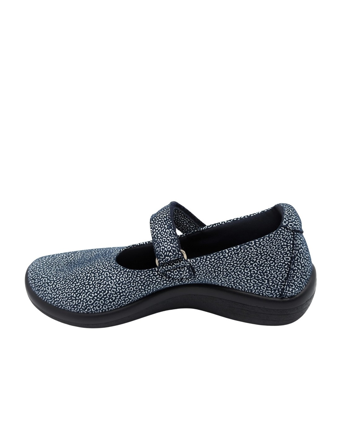 Descripción: Bailarina mujer Arcopedico TRIGLAV de licra estampada elástica azul, reciclada, vegana e hidrofugada. Ajuste velcro. Piso de poliuretano inyectado con sistema de doble arco lateral para mejor el apoyo.