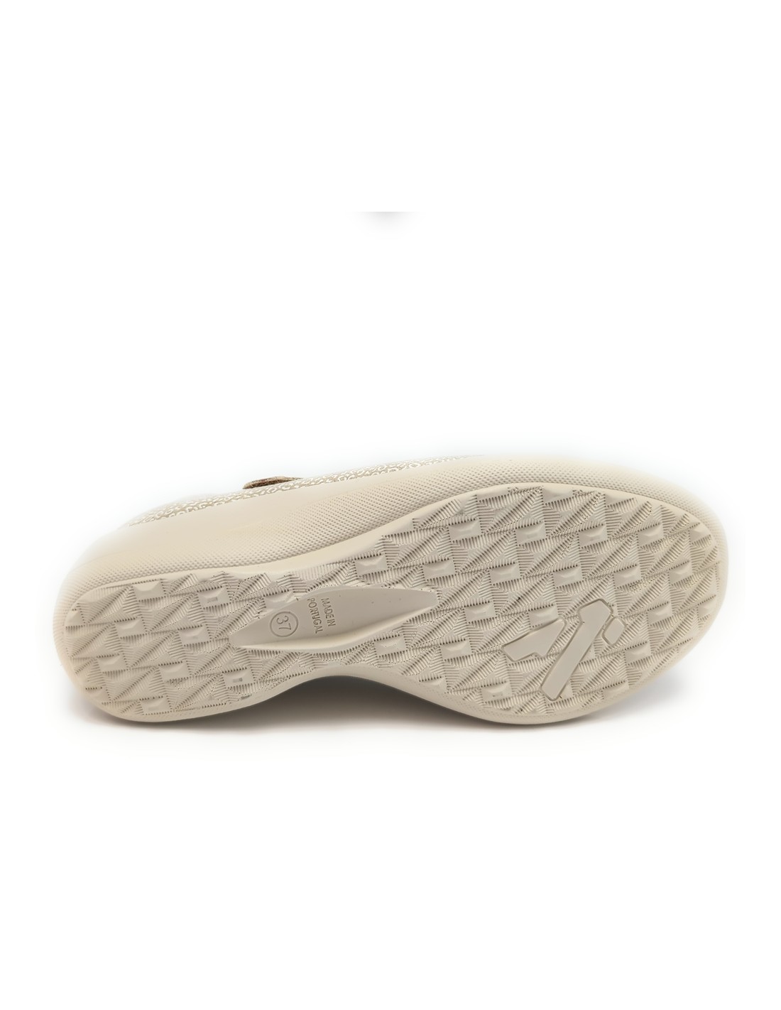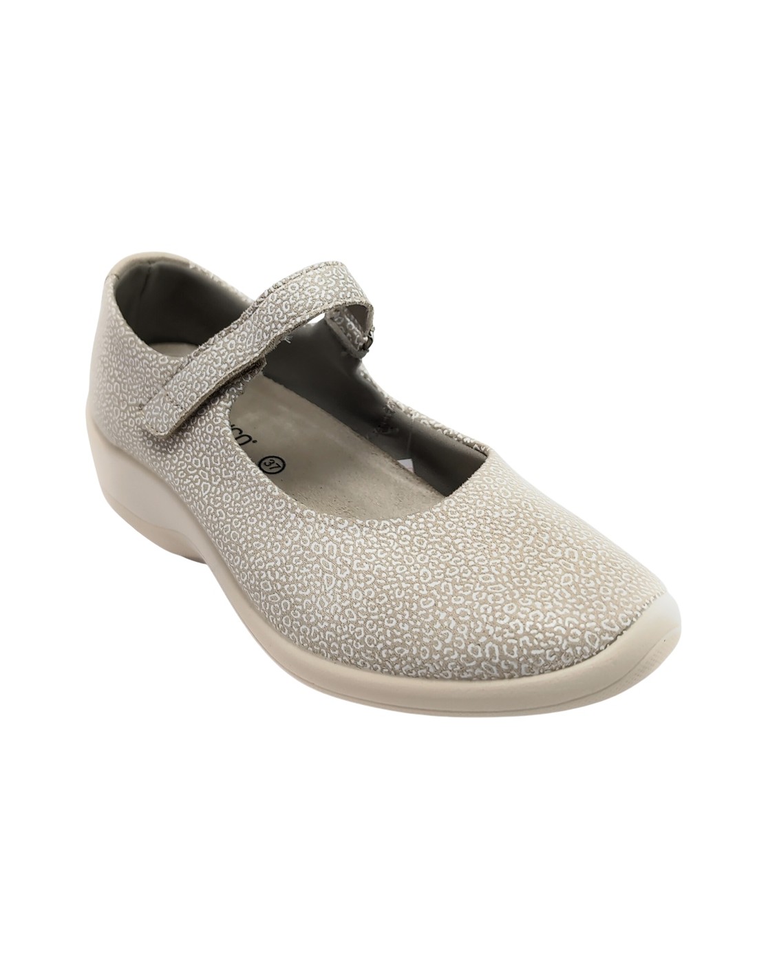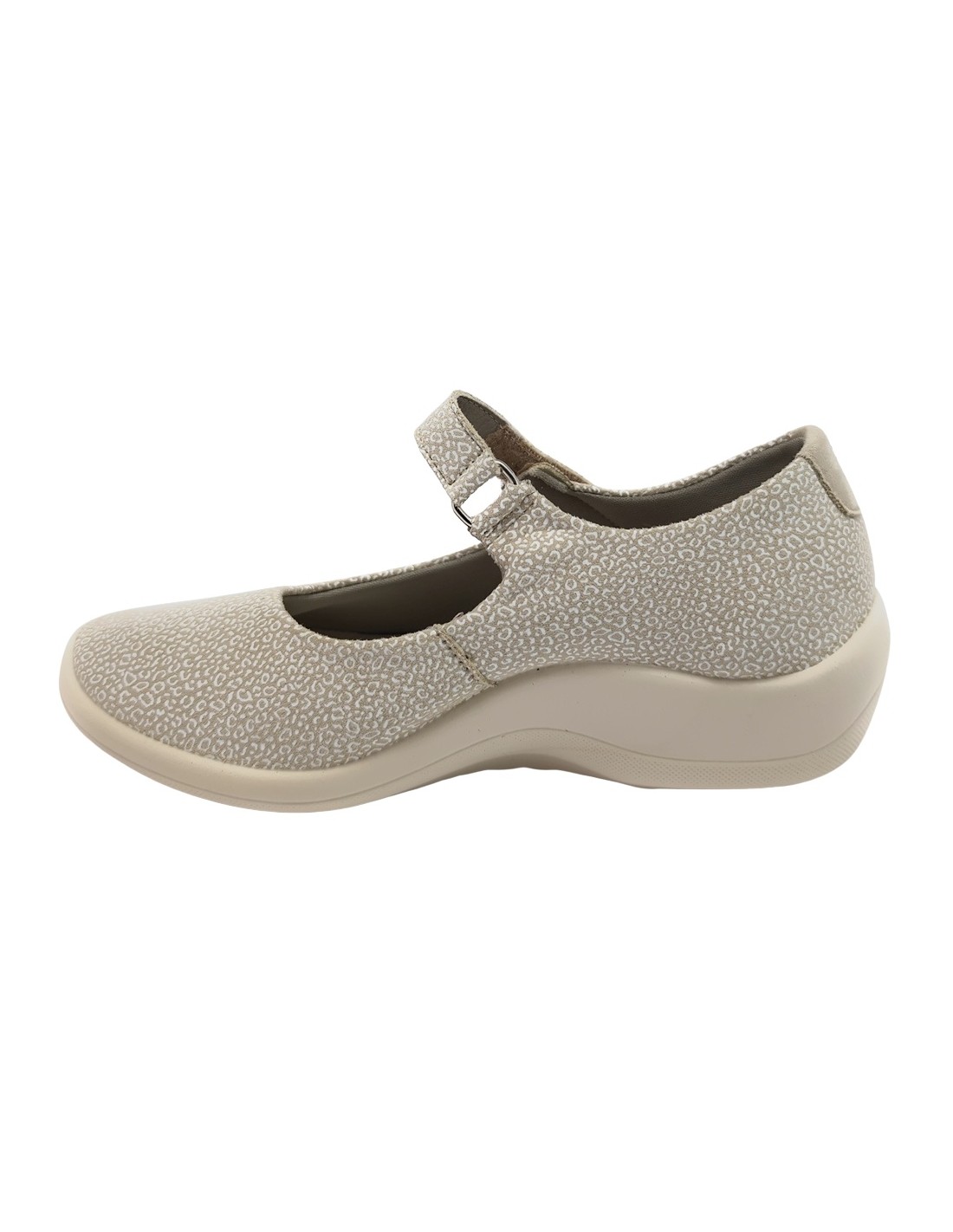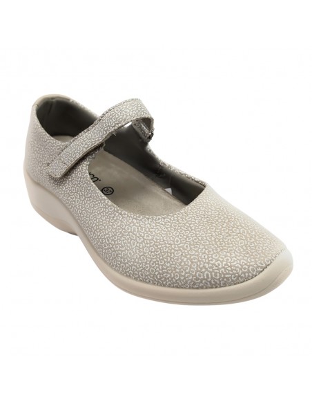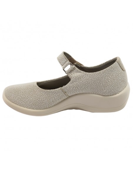Descripción: Bailarina mujer Arcopedico TRIGLAV de licra elástica estampada beig, reciclada, vegana e hidrofugada. Ajuste velcro. Piso de poliuretano inyectado con sistema de doble arco lateral para mejor el apoyo.