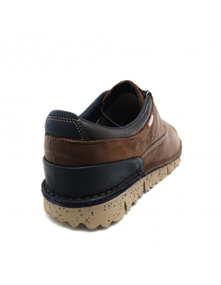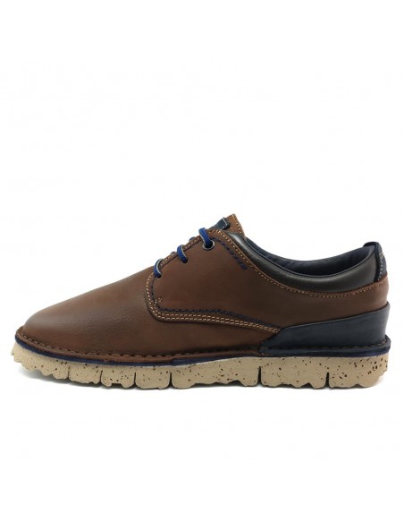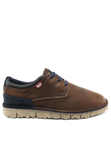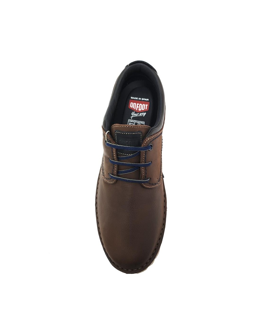 Descripción: Blucher pala lisa hombre On Foot línea FEROE 810 en suave piel marrón con el cuello acolchado y cordones azules. Forro y plantilla móvil en tejido suave y super transpirable. Piso ligero de EVA.