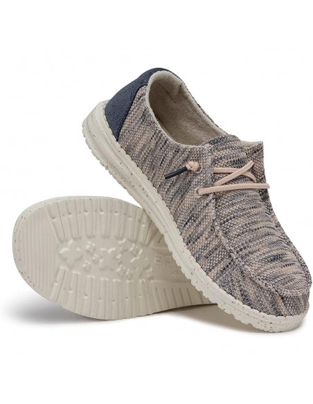 Descripción: Blucher mujer de HEY DUDE SOX-LIGHT PINK texturizadoi y un toque azul. Cordones elásticos. Plantilla ergonómica extraíble de viscoelástica, forrada en piel. Piso ligero de EVA (165 gr). Lavable a máquina en frio