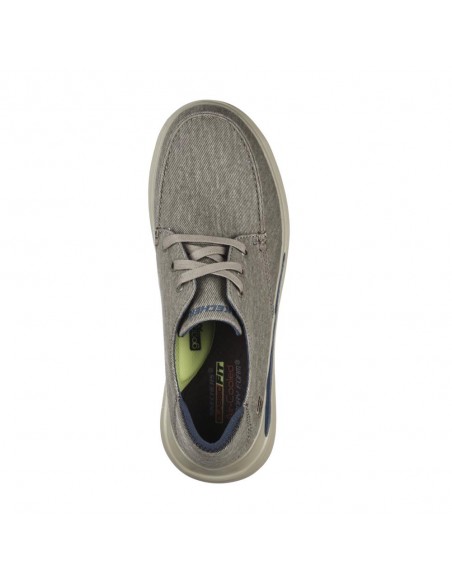 Descripción: Zapato de cordones sport caballero Skechers PROVEN FORENZO en lona lavada beig, aspecto vintage. Ajuste con cordones. Plantilla Air Cooled Memory Foam. Amortiguación GOGA MAT ARCH .