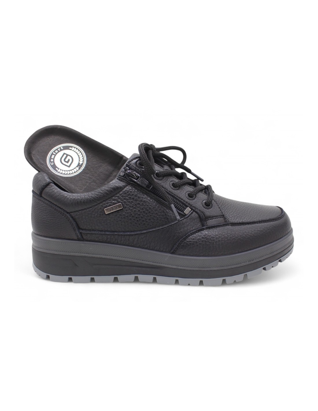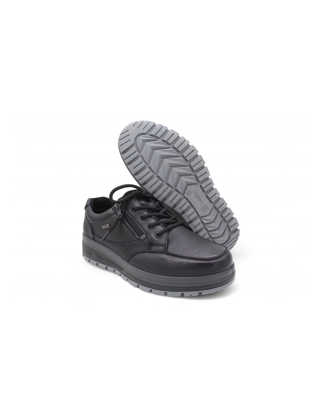 Descripción: Cómodo blucher hombre a-913 de GCOMFORT en suave peil negra con ajuste de cremallera . Membrana impermeable y trasnpirable. Horma ancha. Plantilla anatómica extríble. Piso ligero de TR antideslizante.
