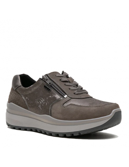 Descripción: Zapato cordones mujer de G Comfort modelo 881-0 en licra y nubuck gris y ajuste cremallera. ANCHO ESPECIAL. Con membrana impermeable y transpirable. Cómoda cuña ligera de poliuretano inyectado antideslizante.