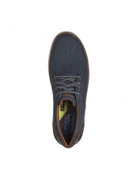 Descripción: Blucher deportivo caballero Skechers HYLAND - RATNER en suave lona azul estilo canvas. Cordones elásticos. Plantilla Air Cooled Memory Foam. Panel de soporte acolchado Goga Mat Arch®
