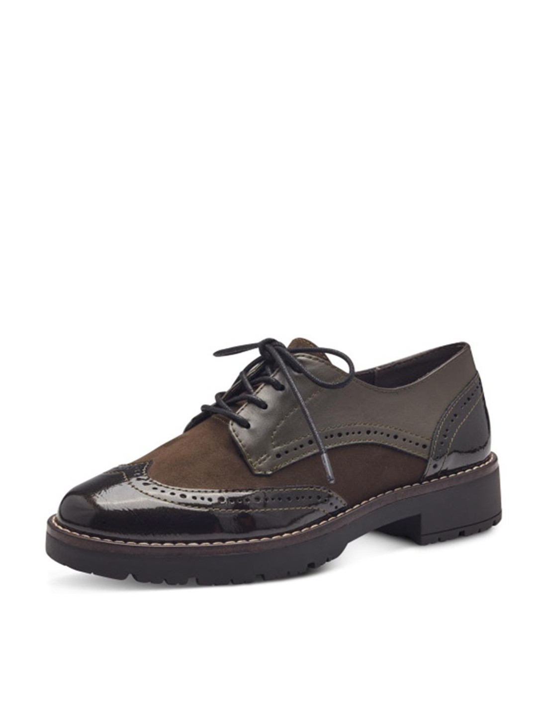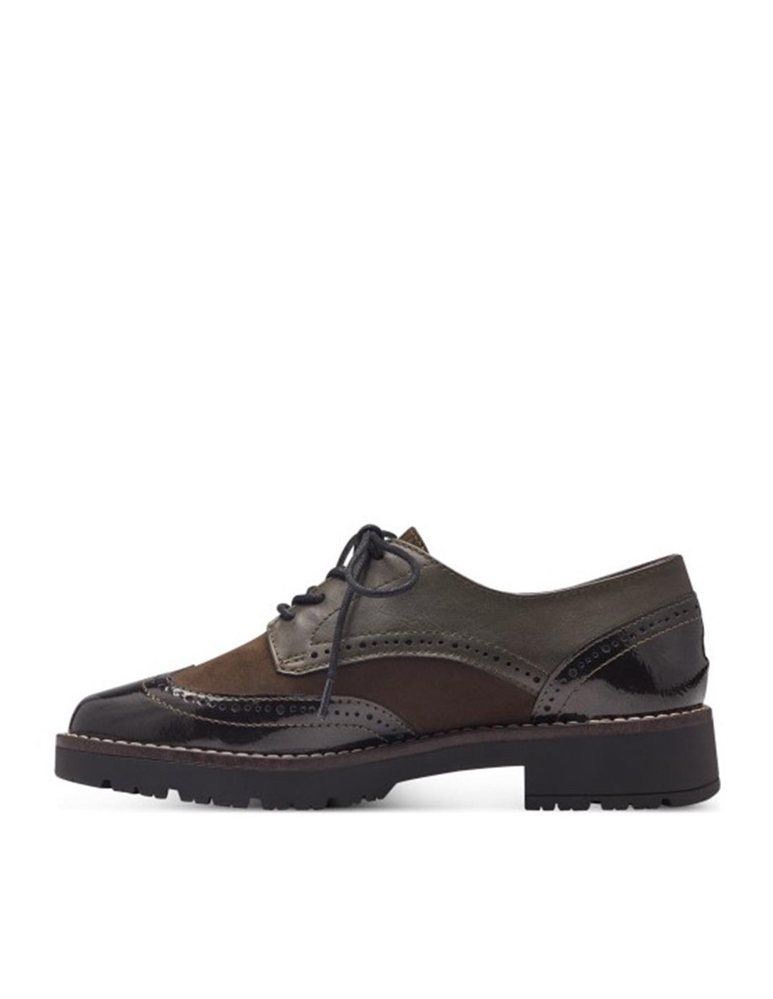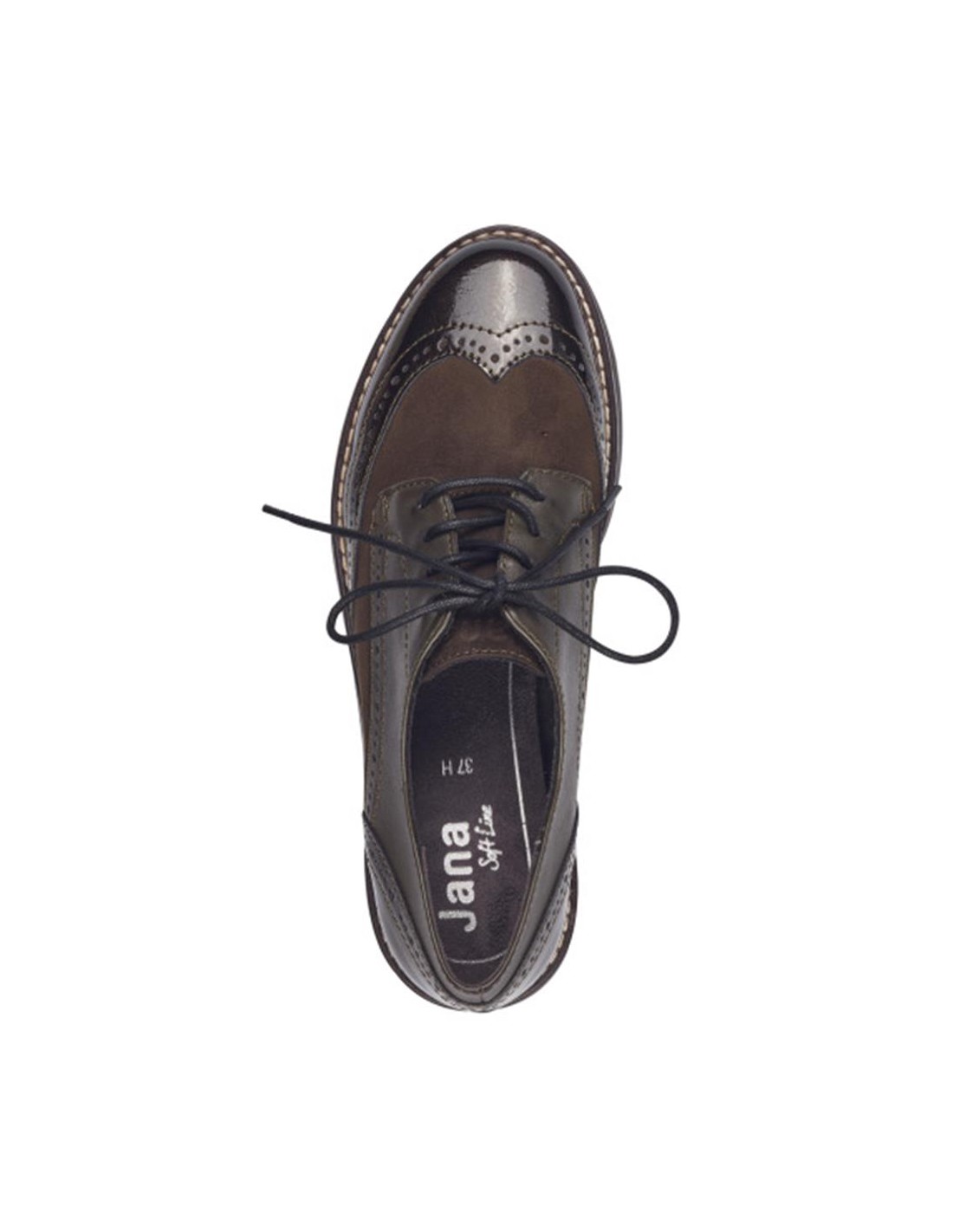 Descripción: Blucher mujer con CERTIFICADO VEGANO 23770 de Jana en suave tejido kaki con refuerzos en charol con los cordones al tono. Plantilla acolchada. Piso ligero, cómodo, flexible y antideslizante.