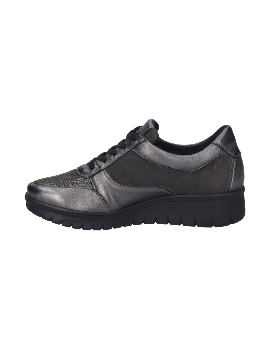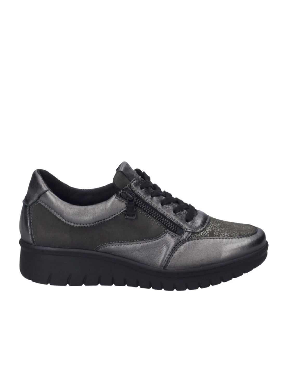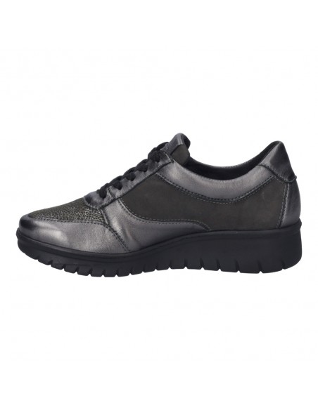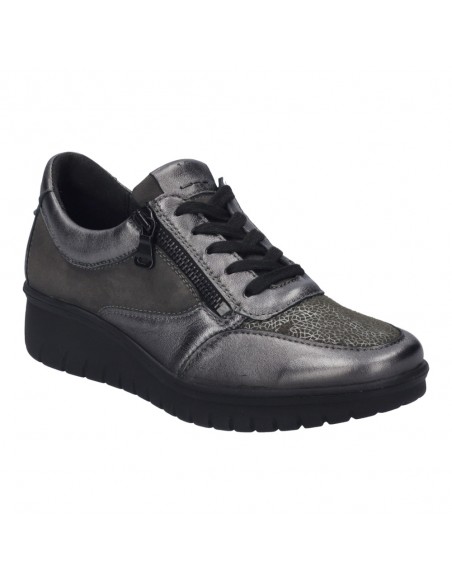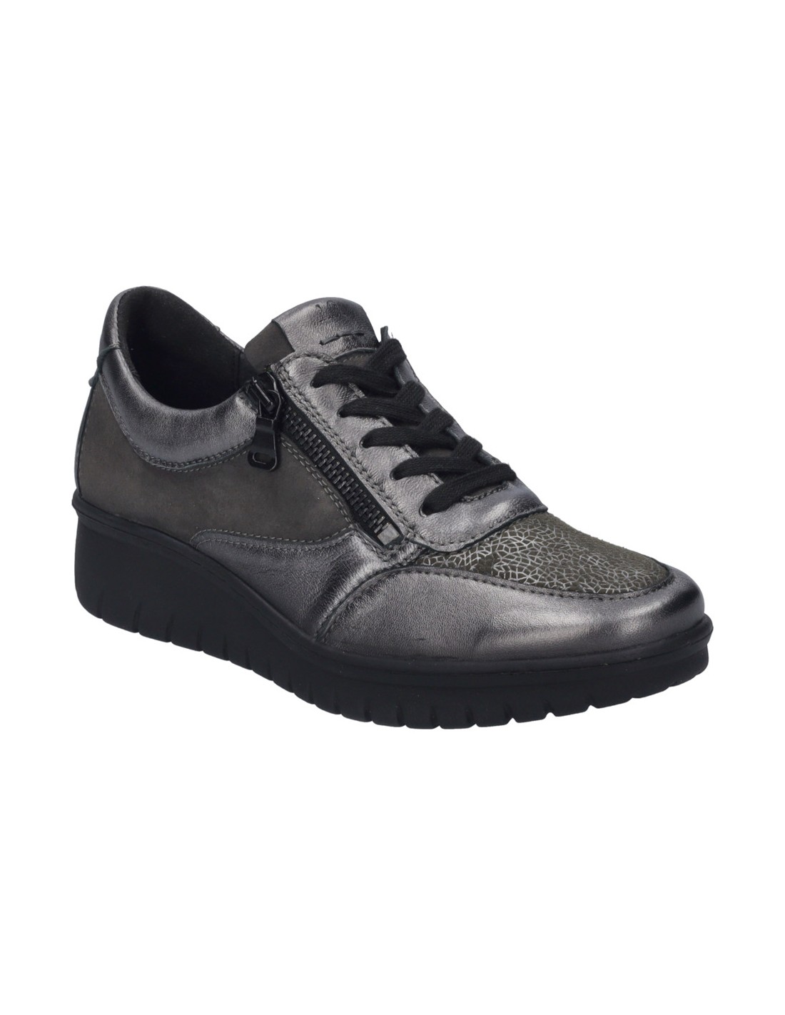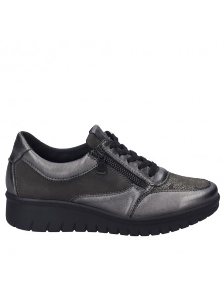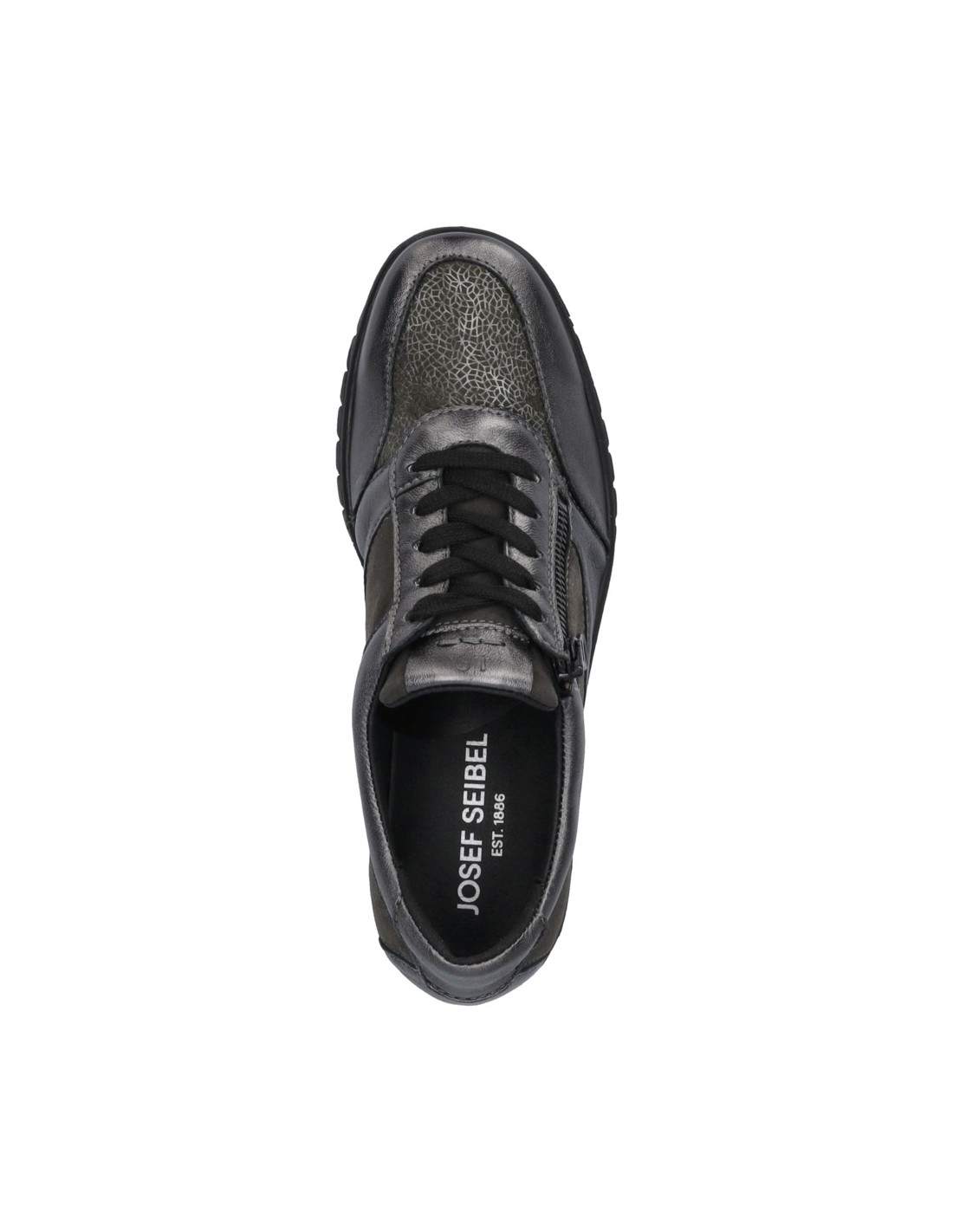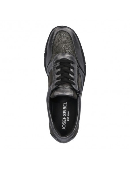 Descripción: Blucher mujer Josef Seibel Calais-01 en suave charol y licra elastica antracita. Ajuste con cordones y cremallera. Plantilla anatómica móvil. Suela amortiguadora, flexible, aislante y antideslizante.
