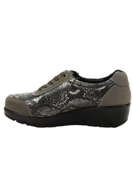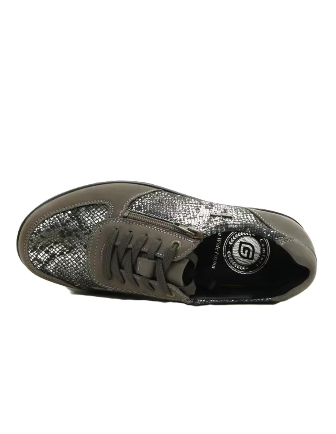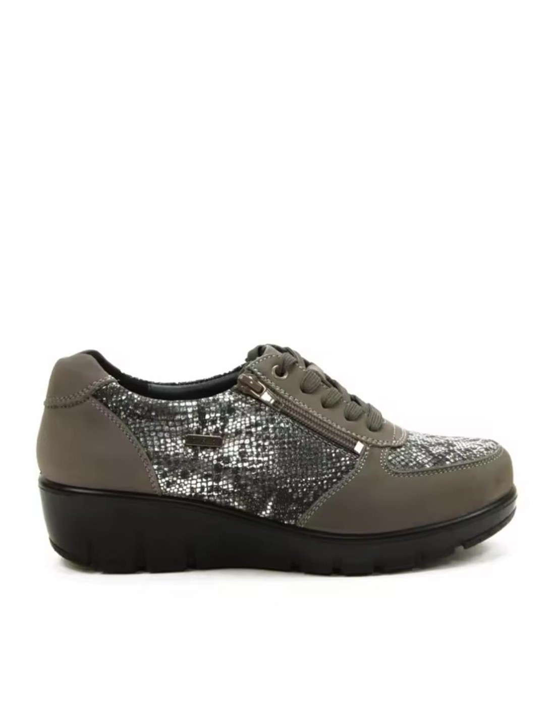 Descripción: Zapato cordones mujer de G Comfort modelo 799-2 en nubuck licra grises. Ajuste cremallera. Con membrana impermeable y transpirable. Cómoda cuña ligera de poliuretano inyectado antideslizante.