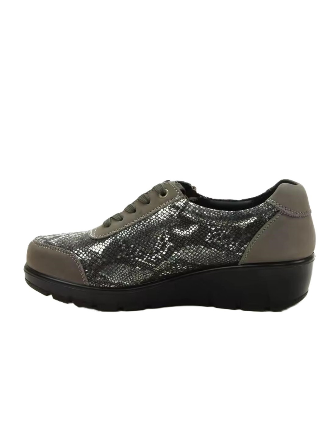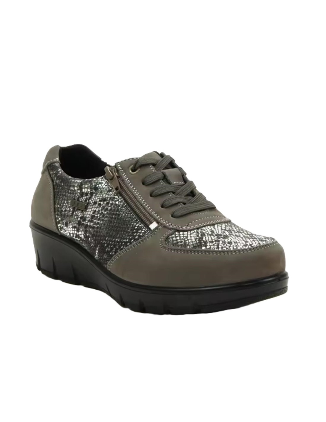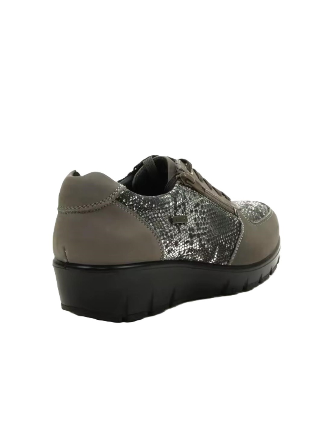 Descripción: Zapato cordones mujer de G Comfort modelo 799-2 en nubuck licra grises. Ajuste cremallera. Con membrana impermeable y transpirable. Cómoda cuña ligera de poliuretano inyectado antideslizante.