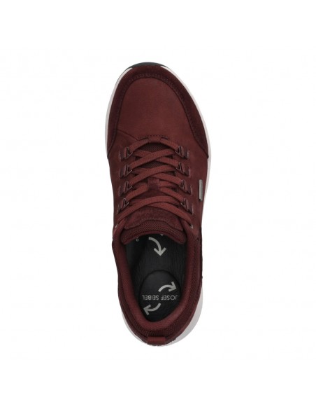 Descripción: Blucher mujer Josef Seibel Eli-50 en suave nubuck granate. Nueva línea iGoDynamick con doble plantilla extraíble para adaptar mejor el ancho y soporte en el arco que aporta más estabilidad. Membrana impermeable Top Dry Tex.