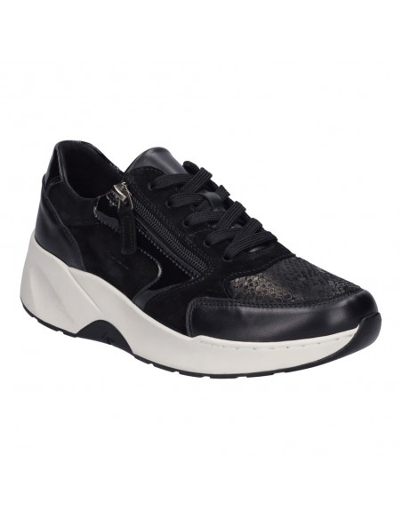Descripción: Blucher mujer Josef Seibel LISSI-04 en suave piel y licra negra. Línea iGoDynamick con doble plantilla extraíble para adaptar mejor el ancho y soporte en el arco que aporta más estabilidad.