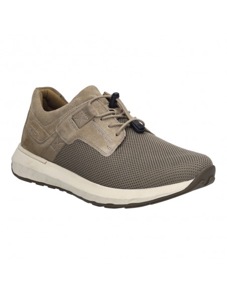 Descripción: Blucher hombre CAMERON-04 de Josef Seibel en suave nubuck y tejido elástico beig. Cordones elásticos. Diseño interior ancho. Planta anatómica móvil en piel. Piso cosido de poliuretano super ligero, flexible y antideslizante.