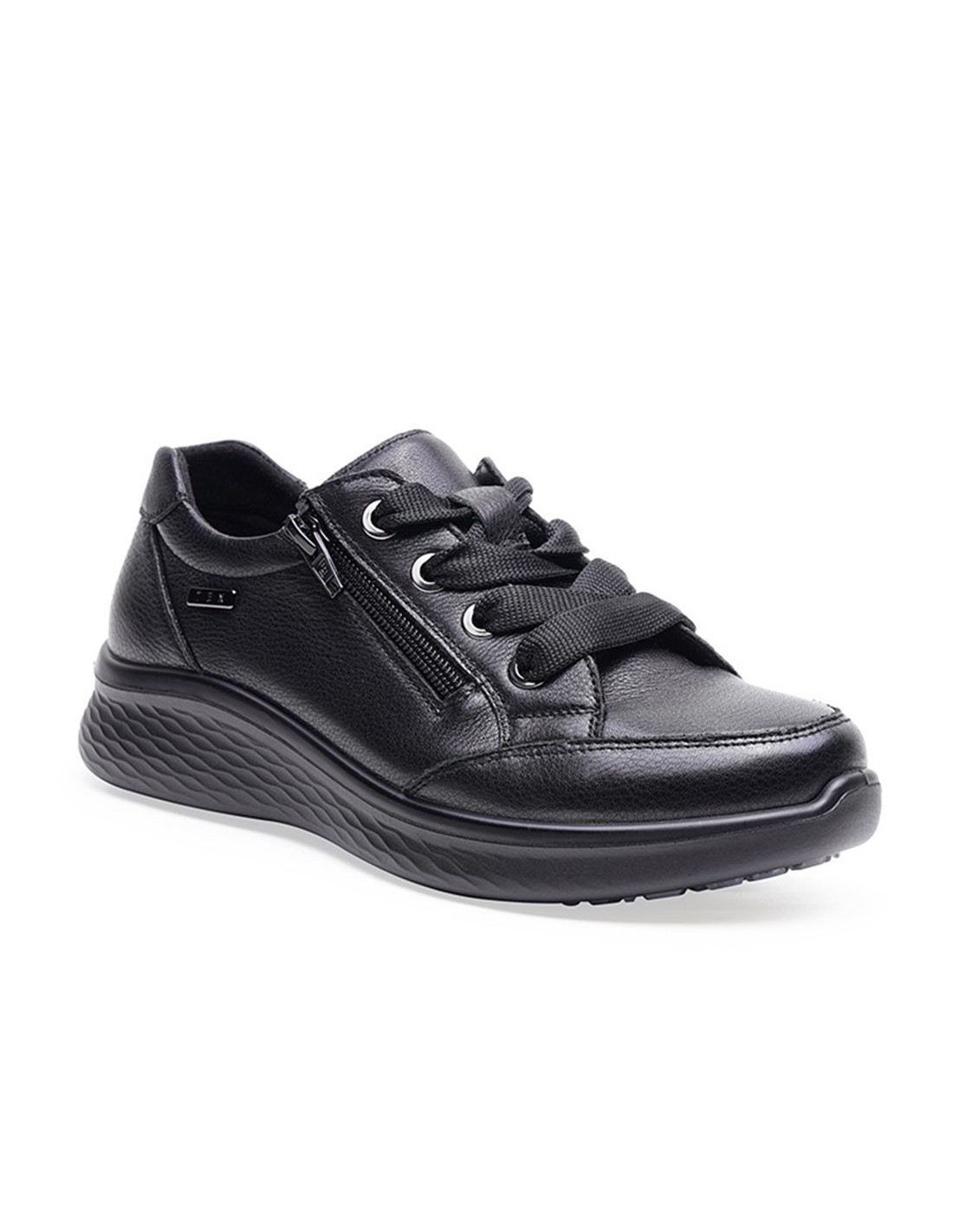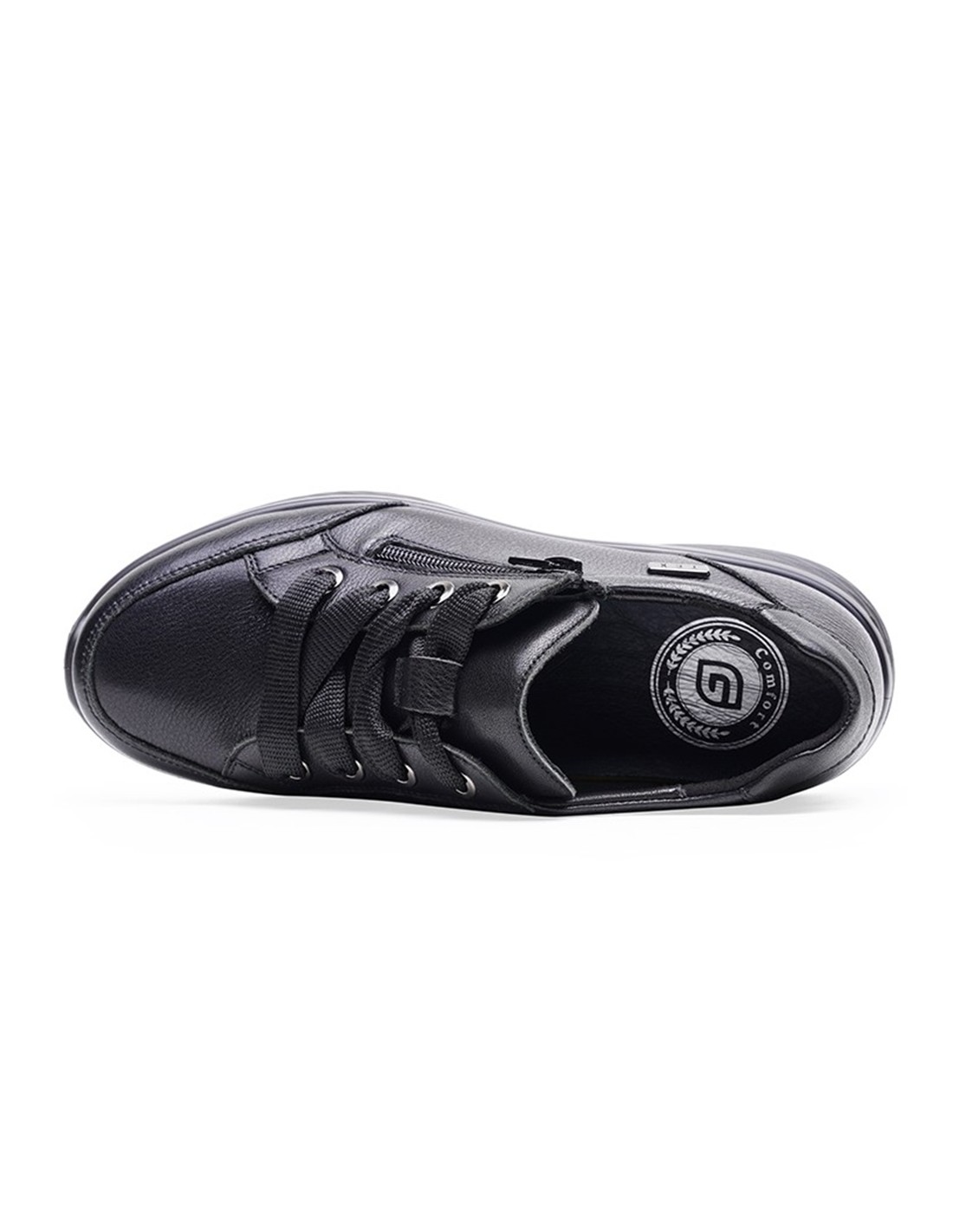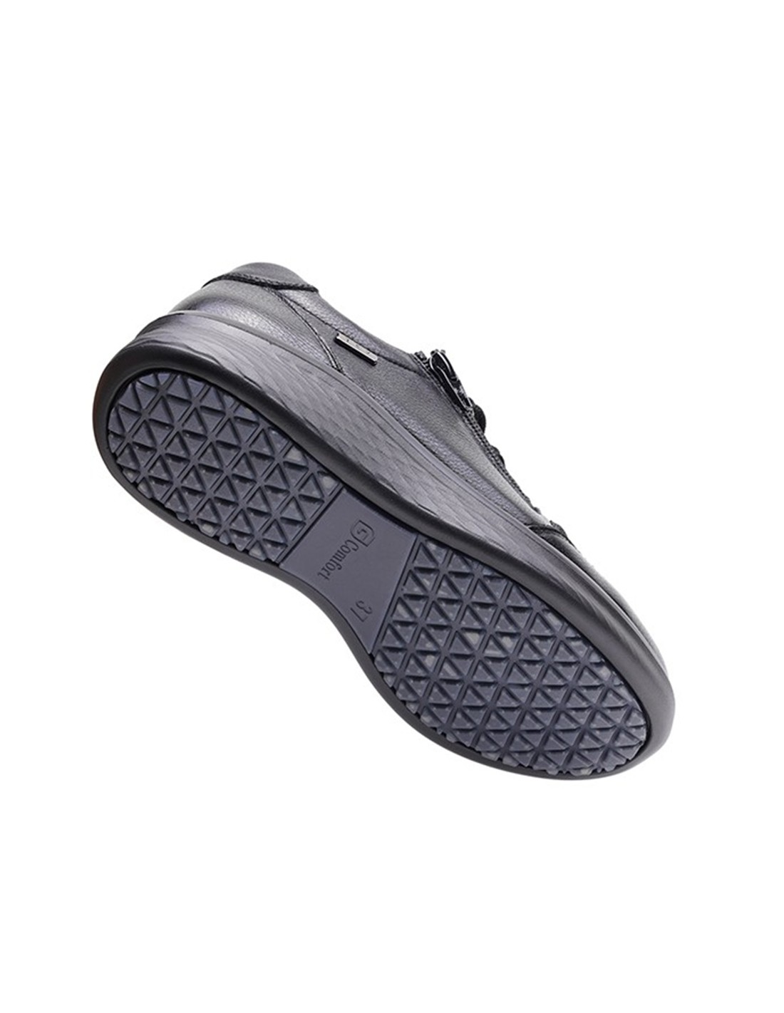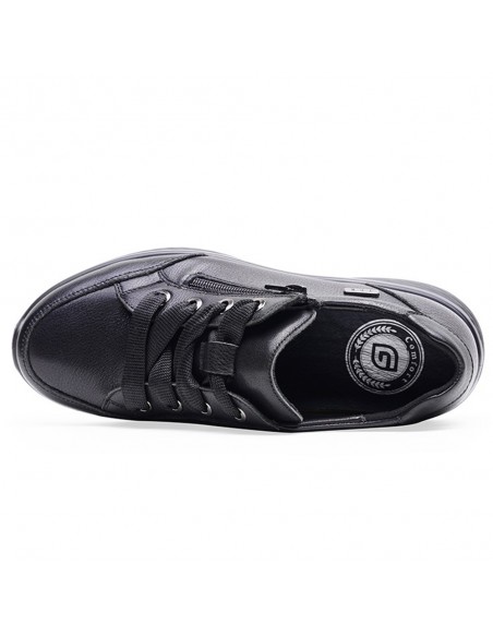 Descripción: Zapato cordones mujer de G Comfort modelo 811 en suave piel negra. Ajuste cremallera. Con membrana impermeable y transpirable. Cómoda cuña ligera de poliuretano inyectado antideslizante.