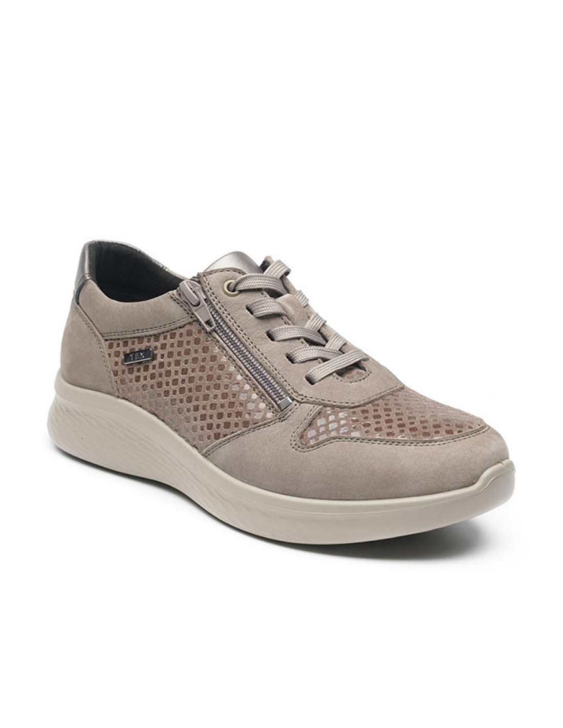 Descripción: Zapato cordones mujer de G Comfort modelo 819 en licra gris con refuerzos en nubuck. Ajuste cremallera. Con membrana impermeable y transpirable. Cómoda cuña ligera de poliuretano inyectado antideslizante.