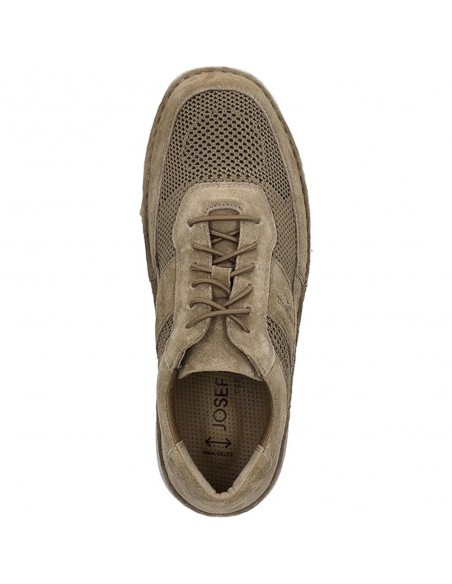 Descripción: Zapatilla deportiva hombre ANVERS-12 de Josef Seibel en suave nubuck y tejido beig. Diseño interior ancho. Planta anatómica móvil en piel. Piso cosido de poliuretano súper ligero, flexible y antideslizante.