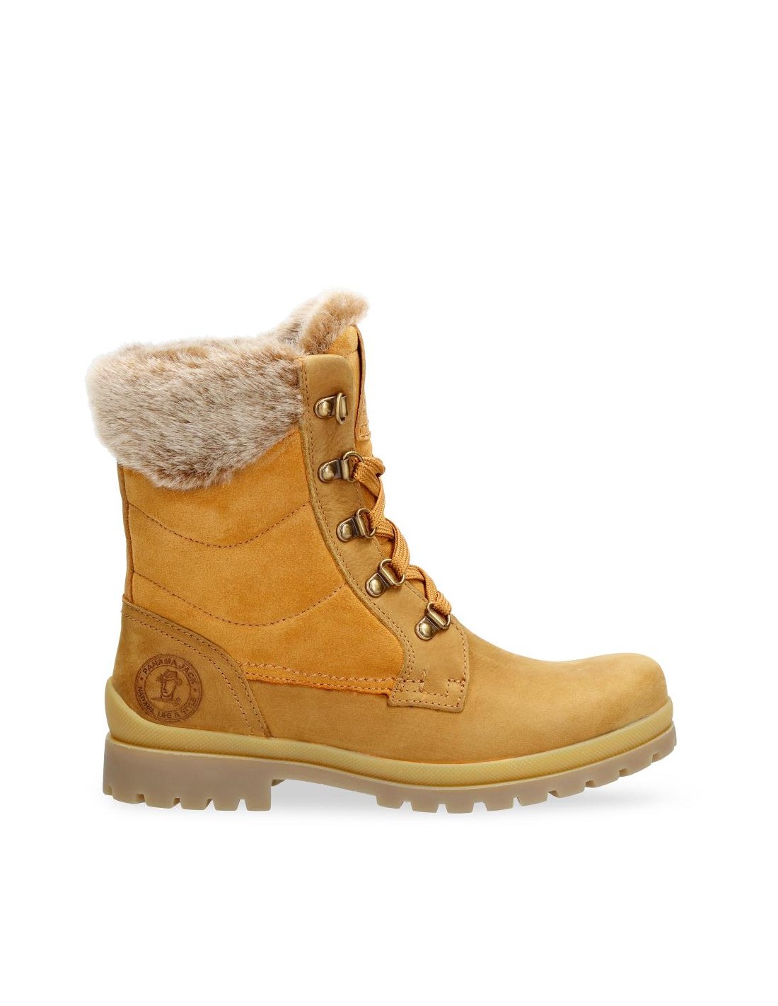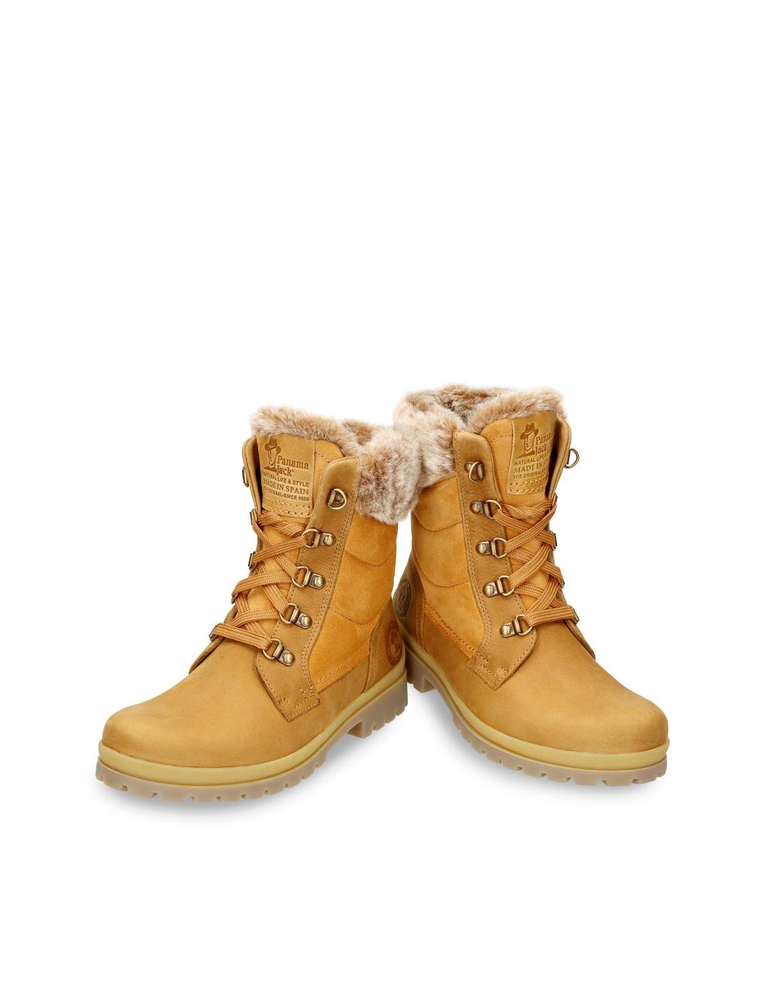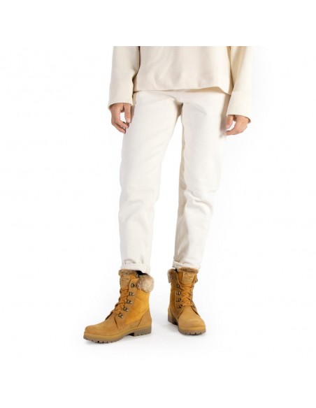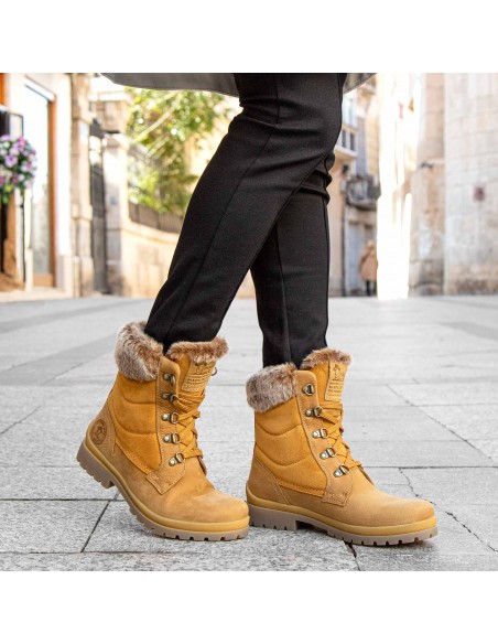 Descripción: Bota mujer de Panama Jack TUSCANI B33, en suave piel ocre, repelente al agua y resistente. Forro de cálida felpa y detalle de pelo en la caña. Cómodo piso de caucho natural flexible y antideslizante.