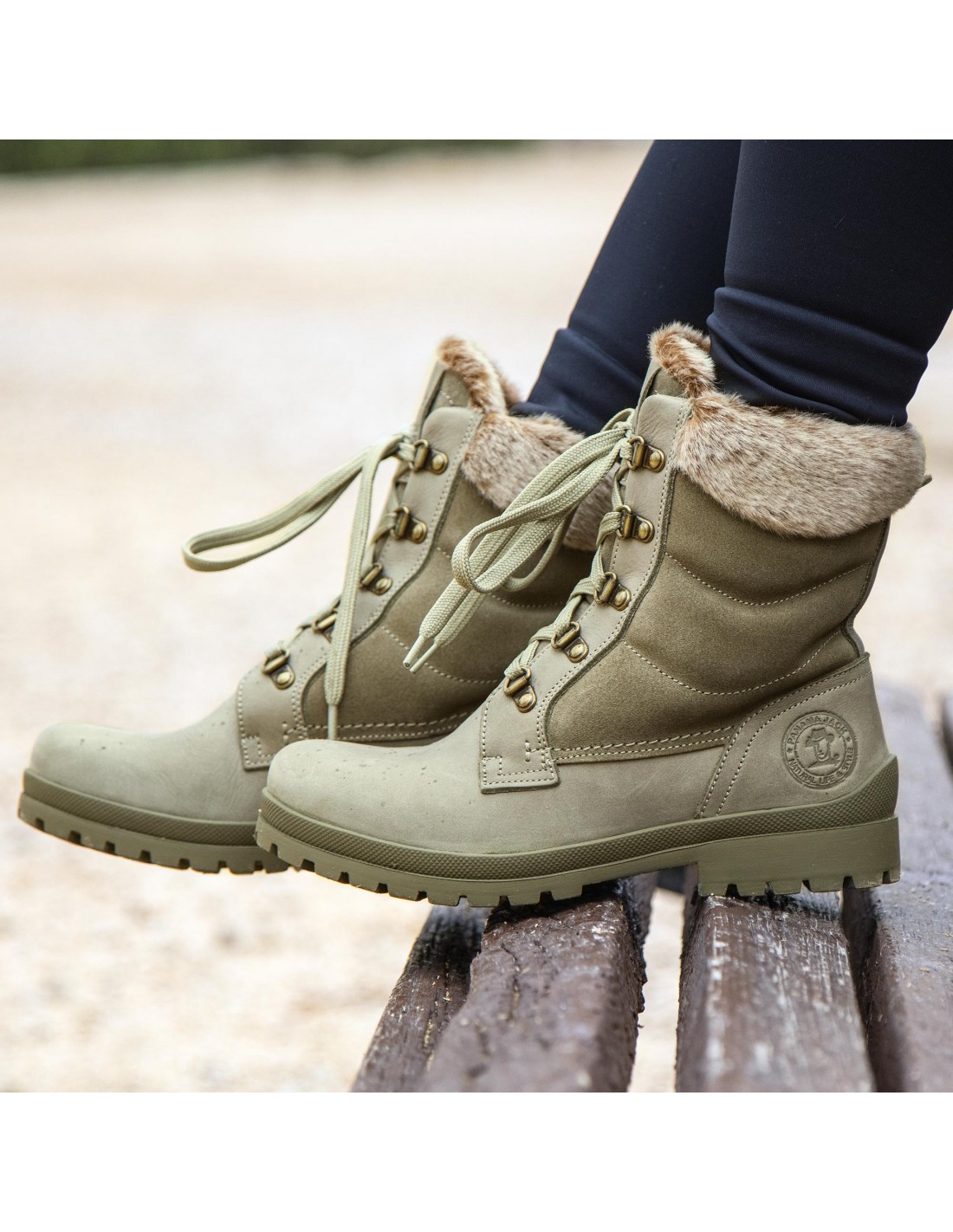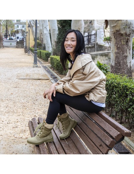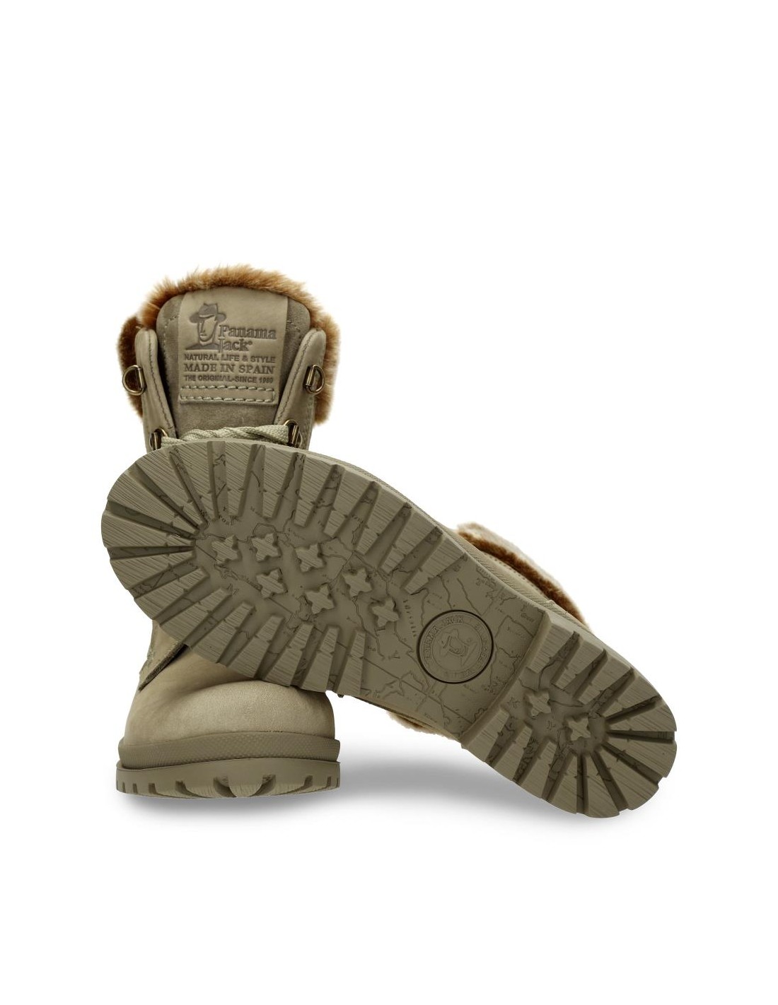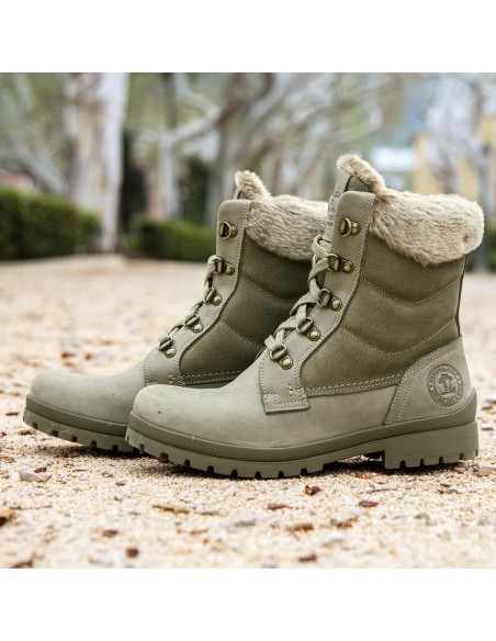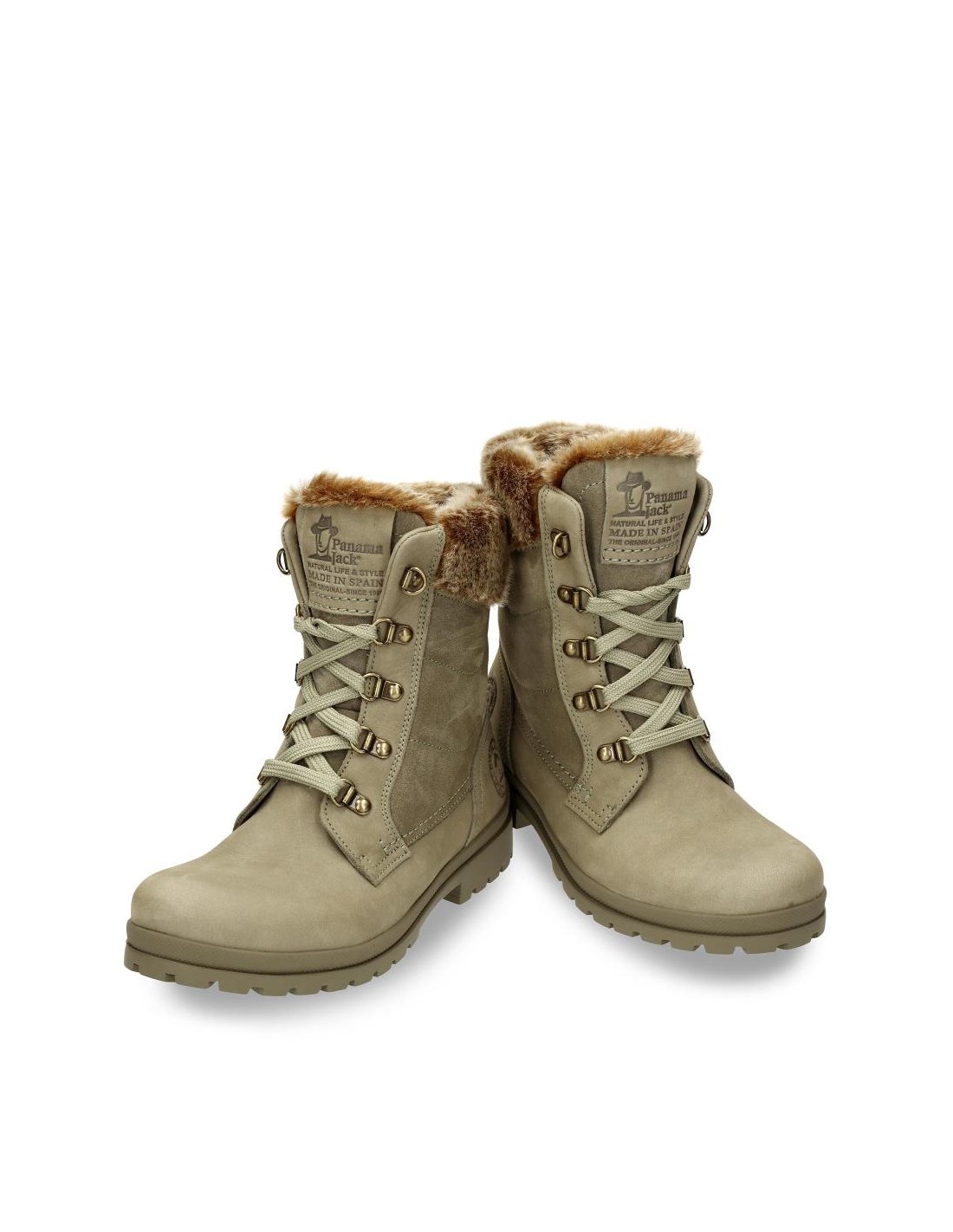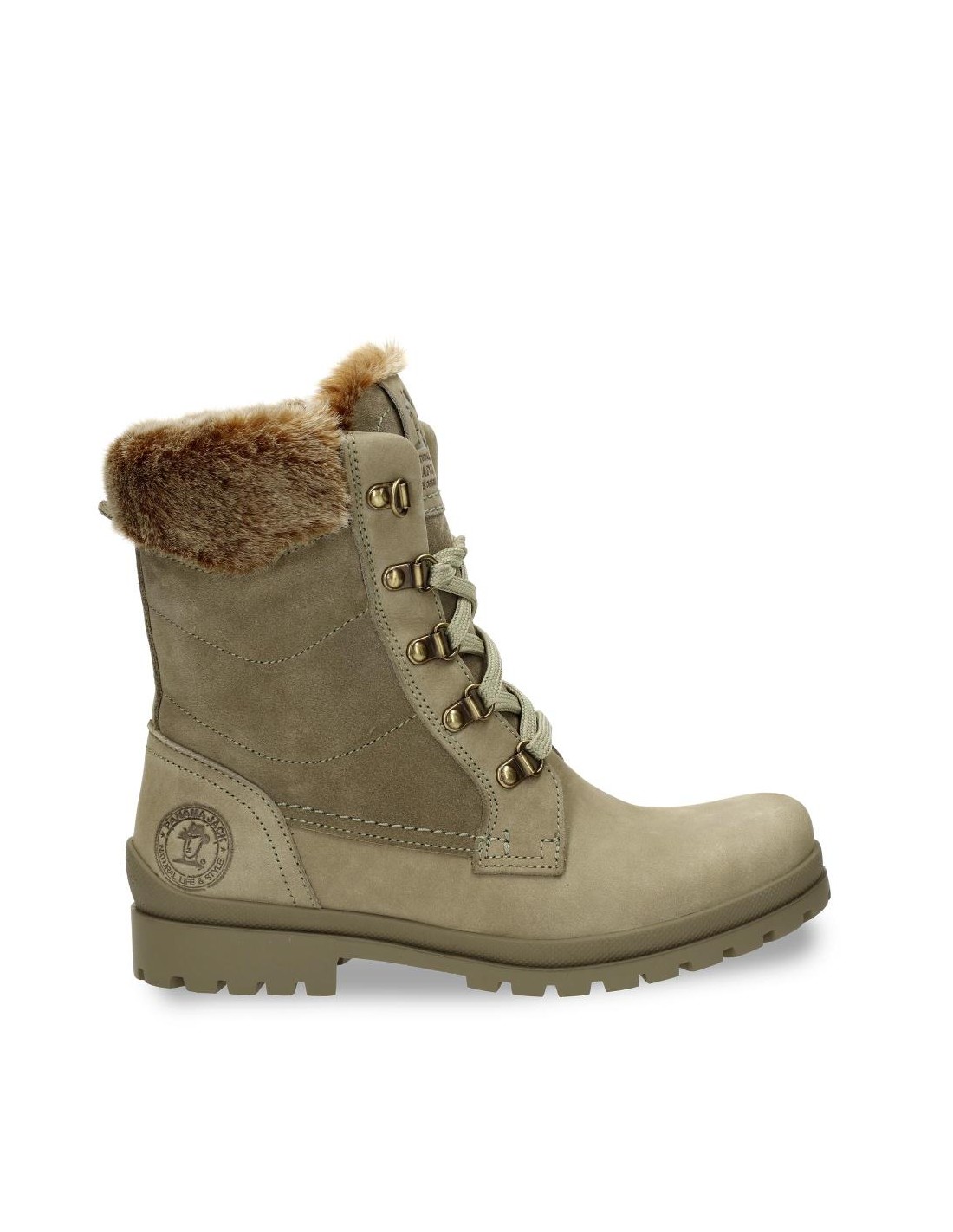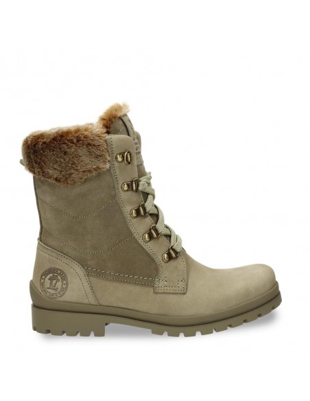 Descripción: Bota mujer de Panama Jack TUSCANI B35, en suave piel khaki, repelente al agua y resistente. Forro de cálida felpa y detalle de pelo en la caña. Cómodo piso de caucho natural flexible y antideslizante.