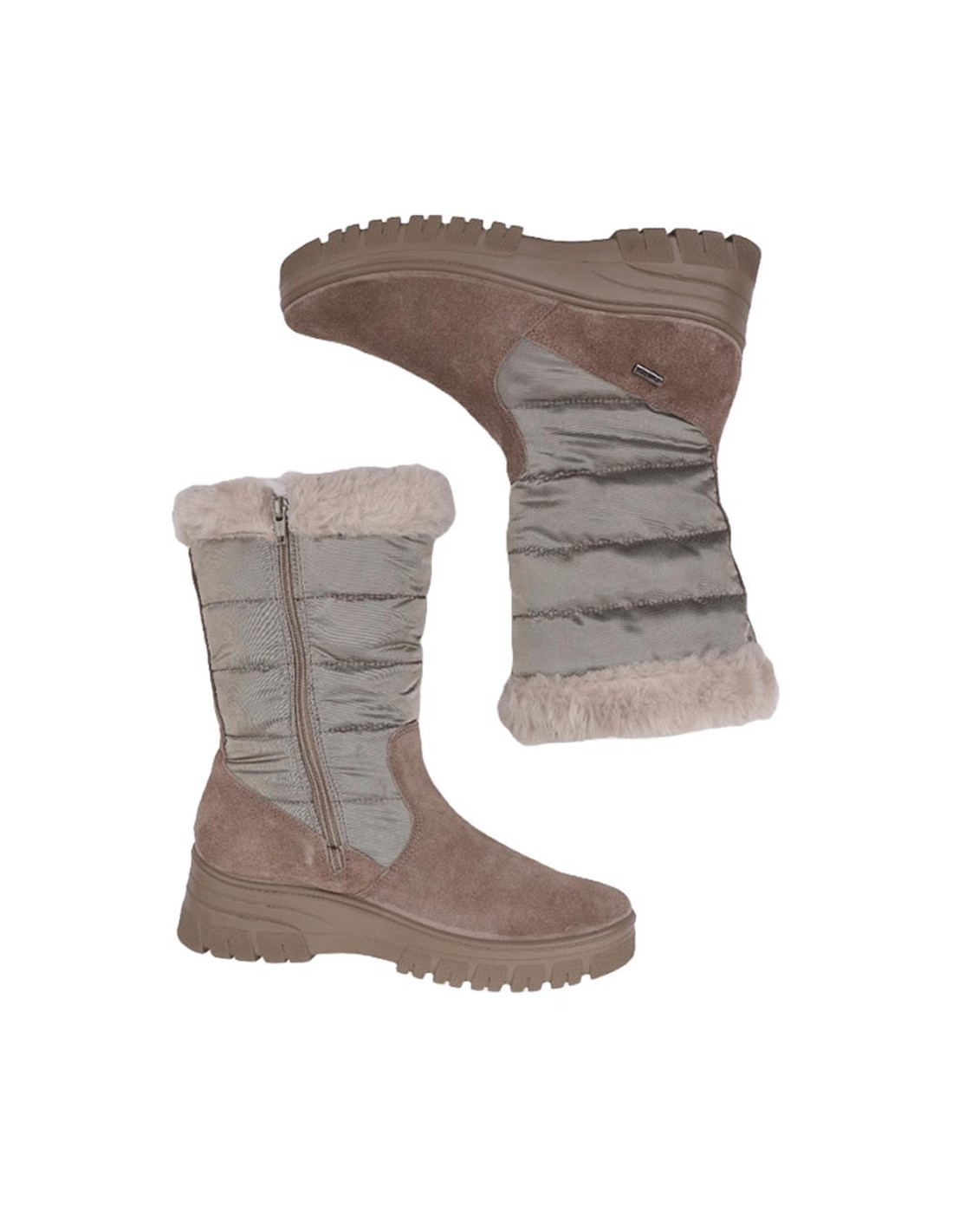Descripción: Bota mujer de IMAC 456658 en en suave naylon taupe y refuerzos en serraje. Membrana impermeable y cálido forro. Cómodo piso de poliuretano inyectado ligero y flexible. Abrigada y cómoda todo el dia