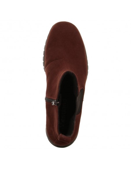 Descripción: Botín mujer Westland Calais-81 en suave tejido burdeos con membrana impermeable Top Dry tex, resistente al viento y transpirable. Plantilla extraible. Ajuste con cremallera. Suela ligera y flexible.