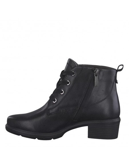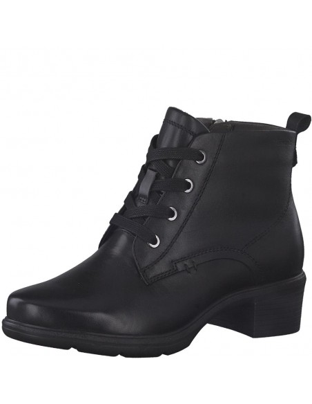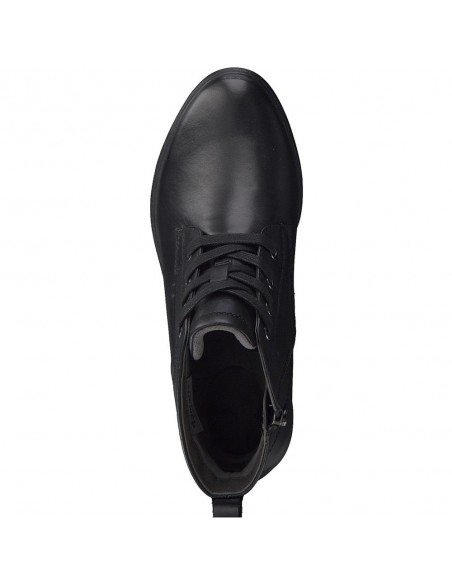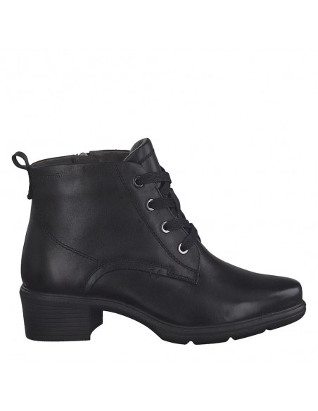 Descripción: Elegante botín mujer 85100 de TAMARIS CONFORT en piel lisa negra con ajuste de cremallera y cordones. Plantilla anatómica extraible. Comodo tacón y piso super flexible y antideslizante.