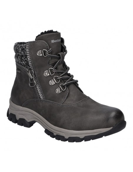 Descripción: Botín mujer Westland Chambery-03 en suave polipiel gris, detalle de lana y membrana impermeable Top Dry tex, resistente al viento y transpirable. Plantilla extraible. Ajuste con cremallera. Suela ligera antideslizante.