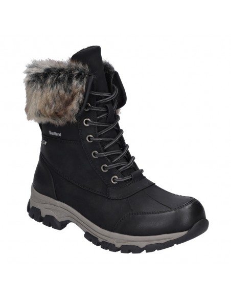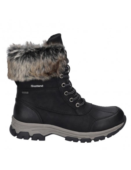 Descripción: Botín mujer Westland Chambery-04 en suave polipiel negra, detalle de pelo y membrana impermeable Top Dry tex, resistente al viento y transpirable. Plantilla extraible. Ajuste con cremallera. Suela ligera y antideslizante.