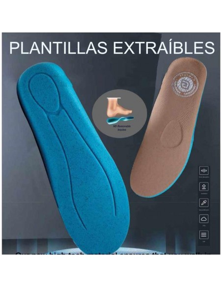 La suela están fabricadas en materiales ligeros, flexibles y antideslizantes e incorporan varias capas que absorben los impactos.