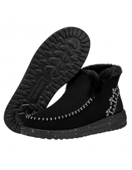 Descripción: Botín mujer DENNY WOOL FAUX SHEARLING de HEY DUDE en suave tejido aspecto nubuck negro y detalle de pelo. Forro cálido. Plantilla ergonómica extraíble de viscoelástica. PlatafoRma ligera de EVA (165 g