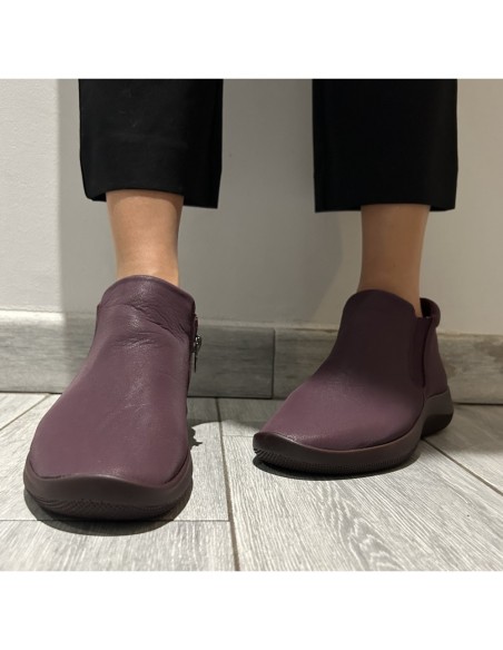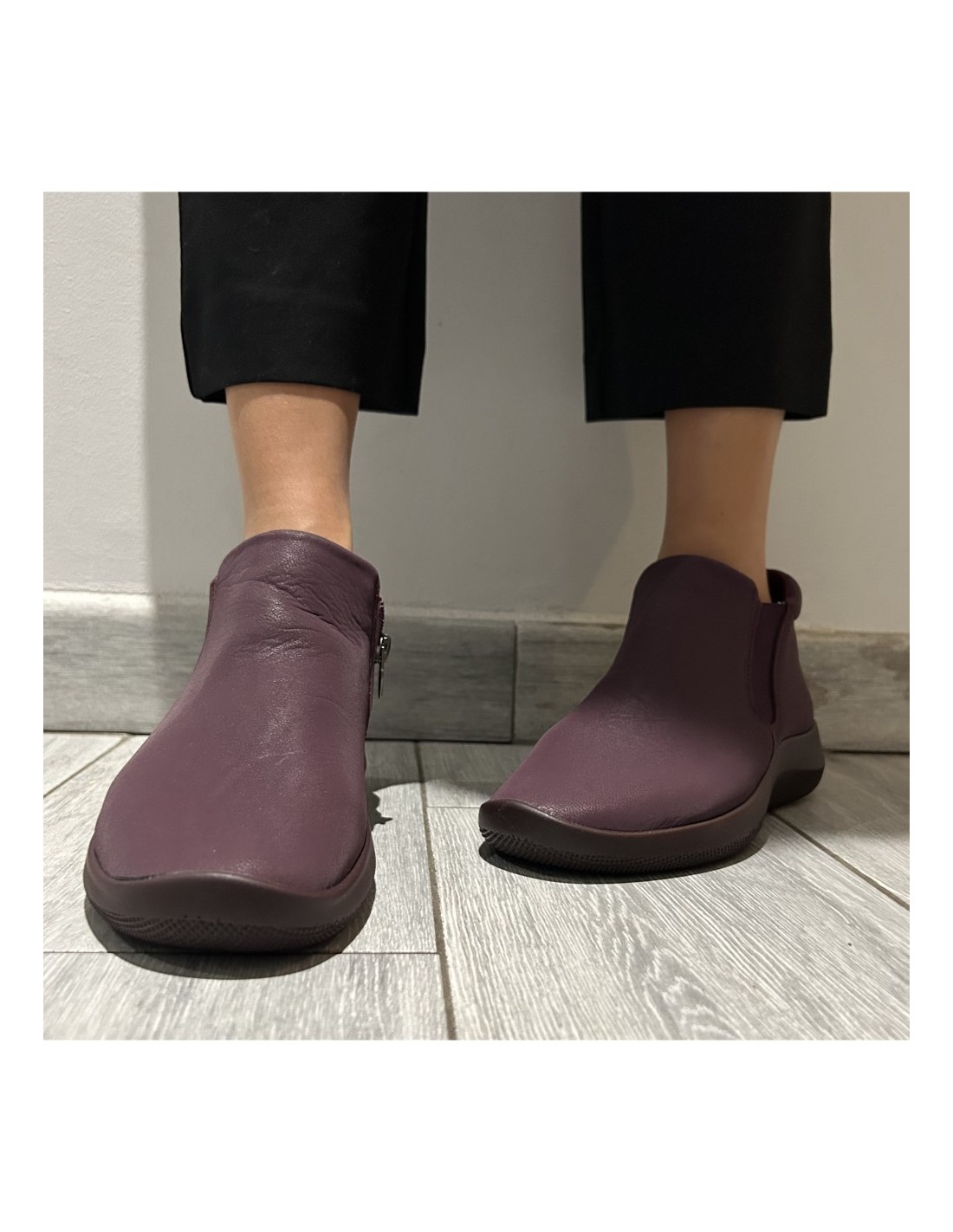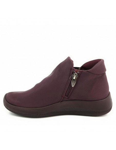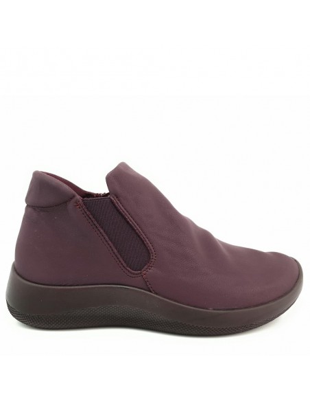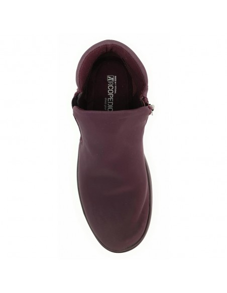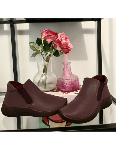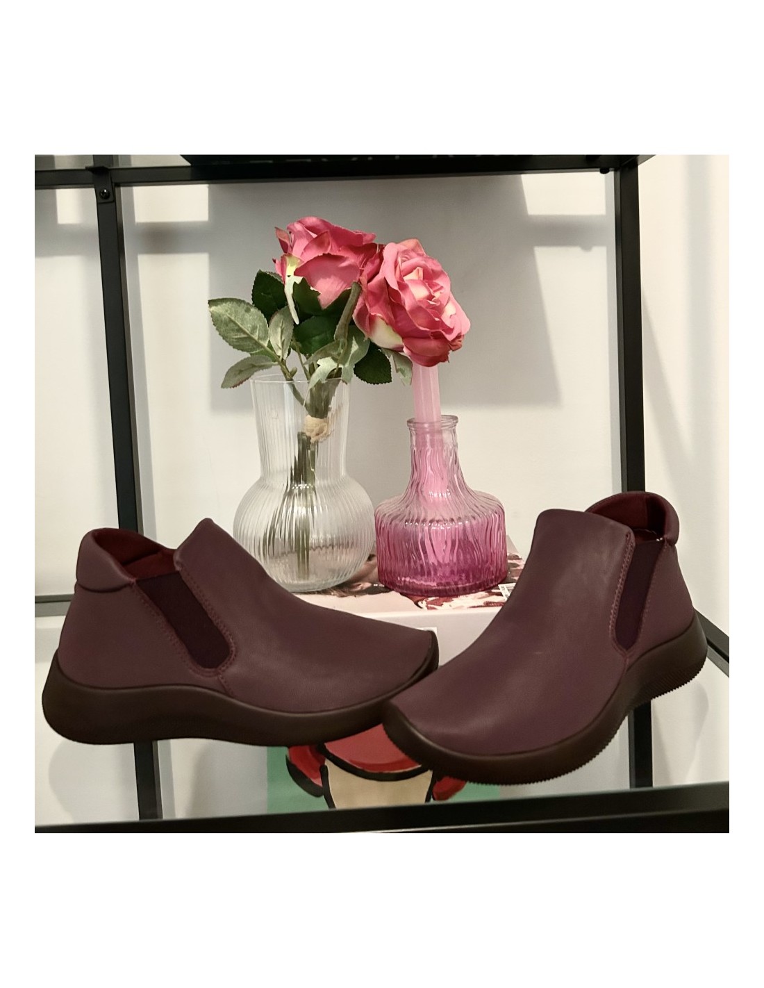 Descripción: Botín mujer Arcopedico LOUISE en licra elástica transpirable tipo nubuck burdeos, reciclada, vegana e hidrofugada. Ajuste elástico lateral. Suela PU orgánico súper ligero. Sistema Doble Arco plantar para mejorar el apoyo.