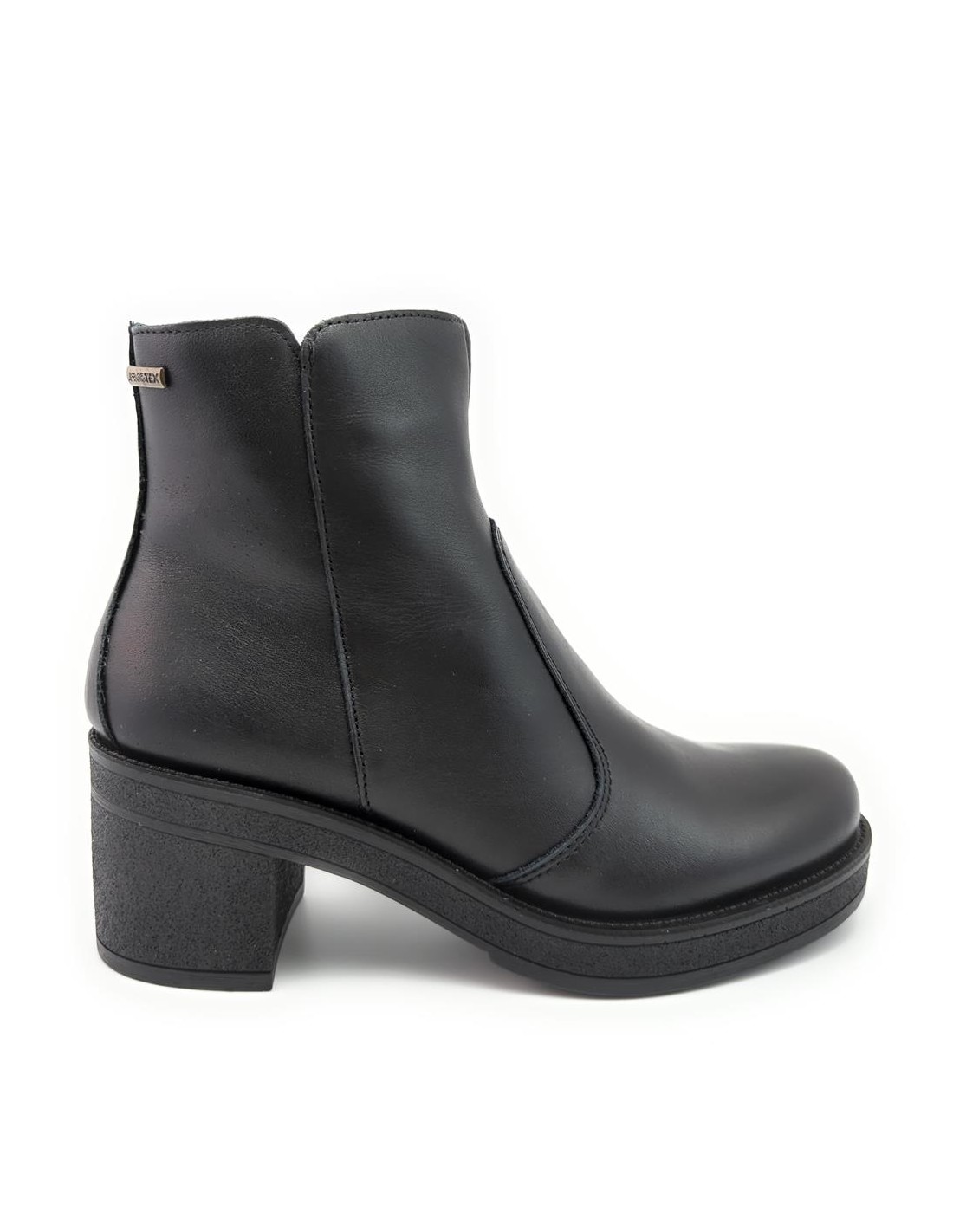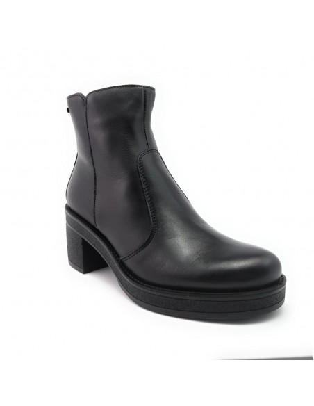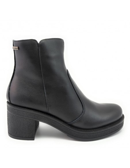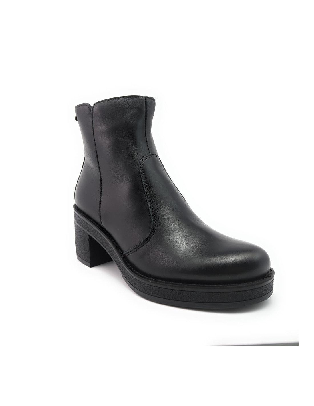 Descripción: Botín mujer 657218 de IMAC en suave piel negra con membrana impermeable y cálido forro. Ajuste cremallera lateral. Cómodo piso de con tacón cuadrado de poliuretano inyectado ligero y flexible.