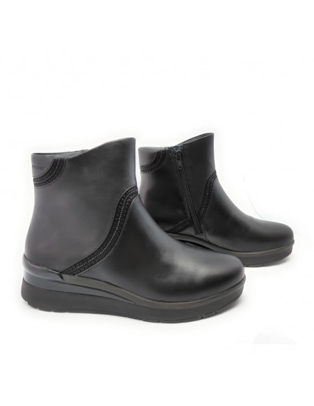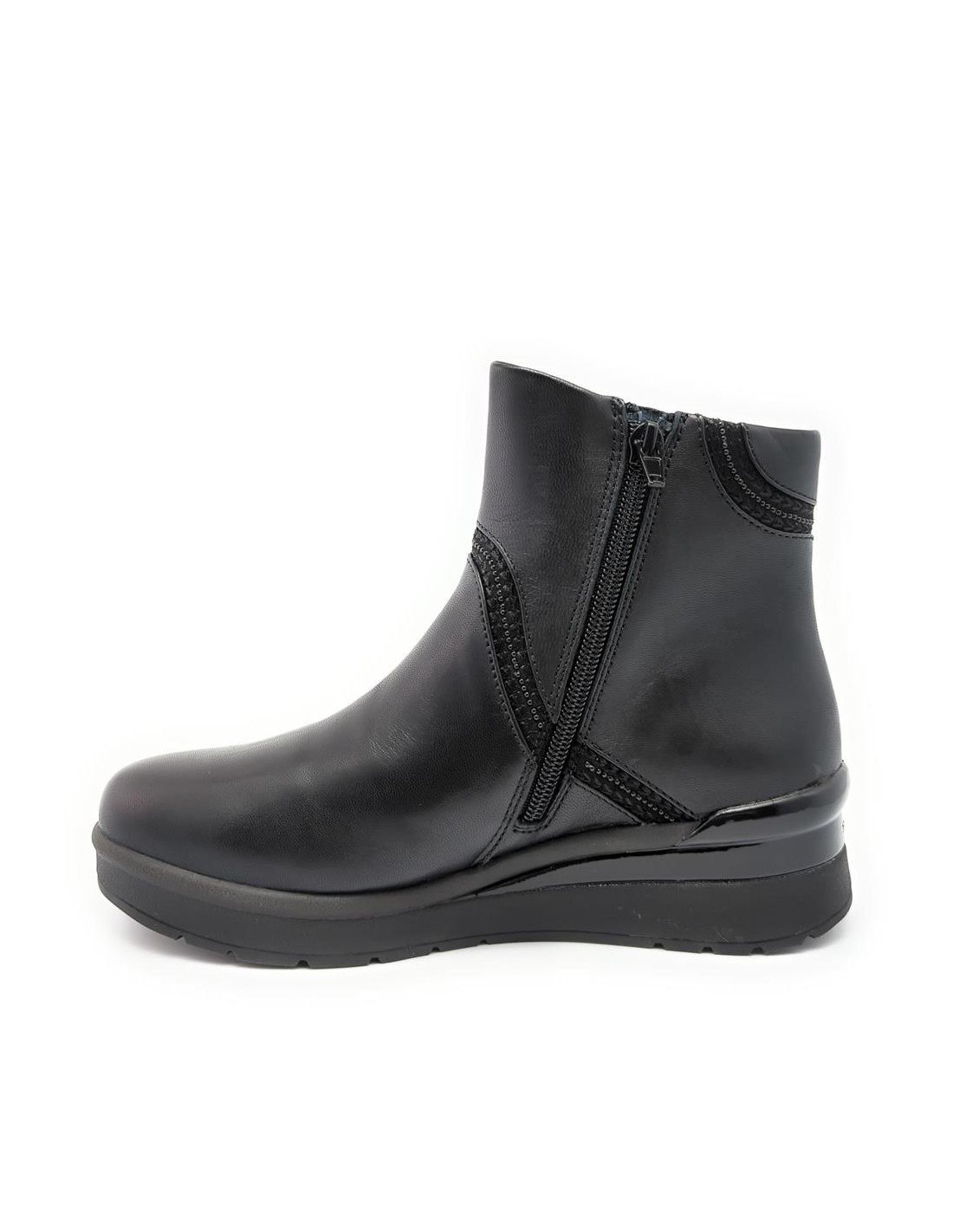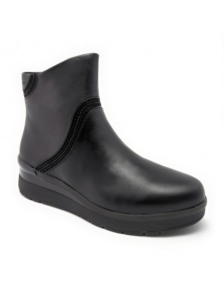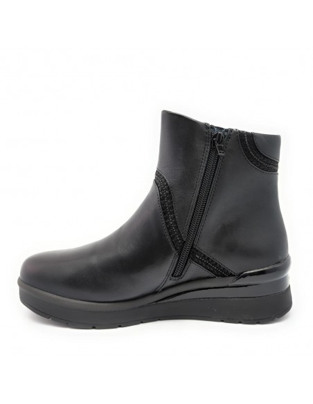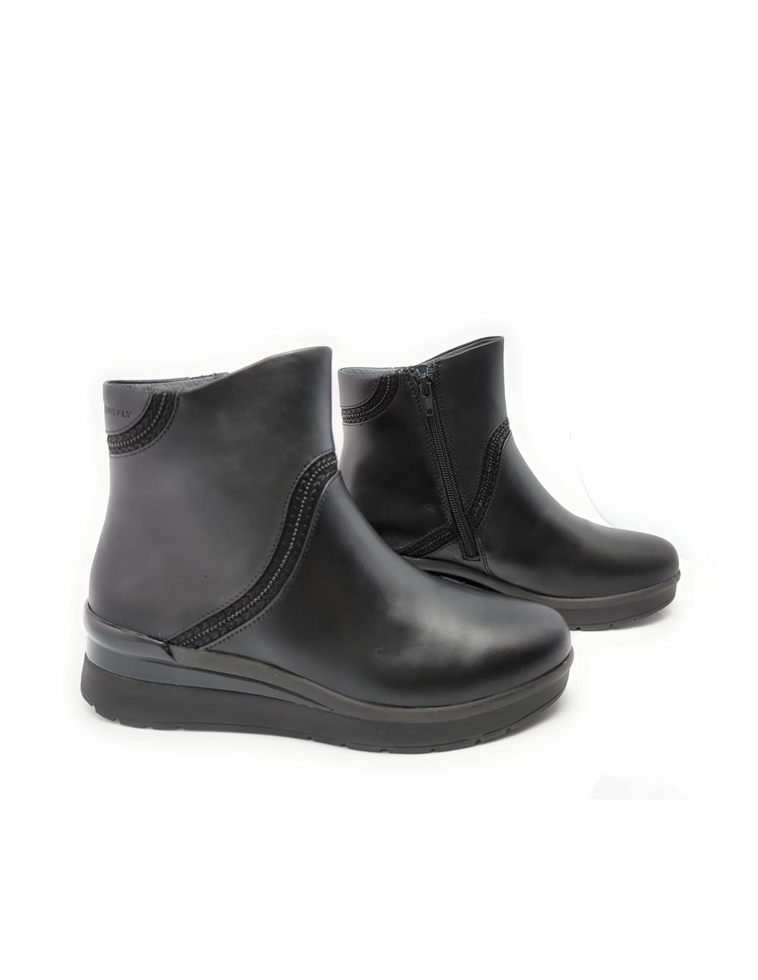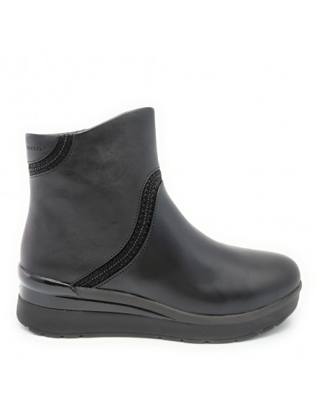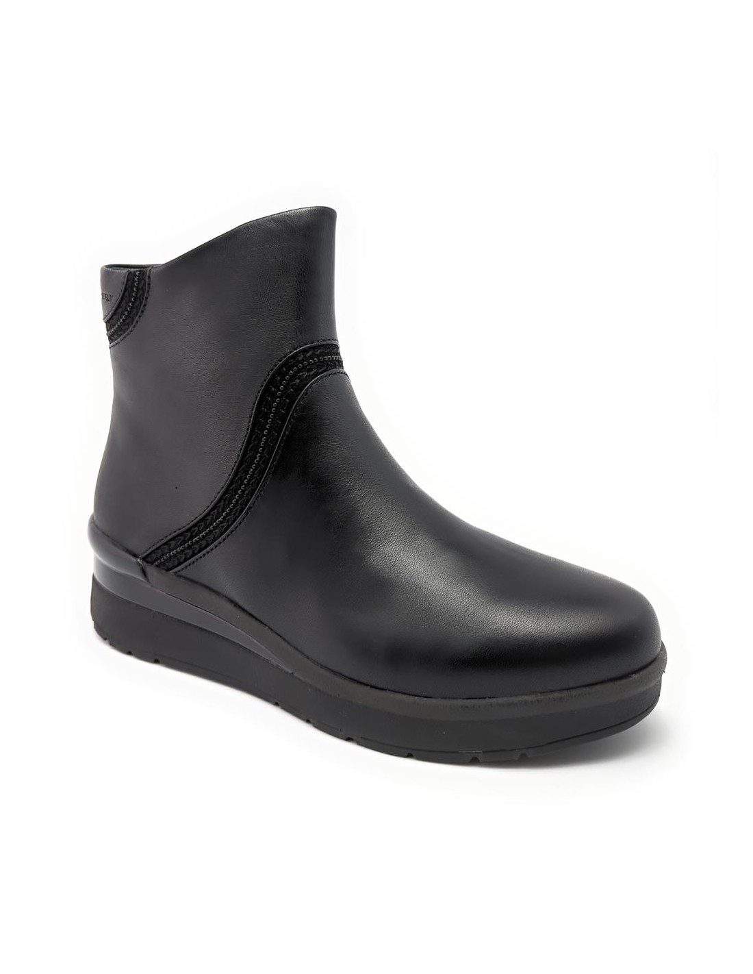 Descripción: Cómodo y elegante botín mujer de Stonefly CREAM-55 en suave piel negra y detalles de pedrería. Ajuste con cremallera. Ligera cuña con tecnología BLUSOFT que garantiza una amortiguación perfecta.