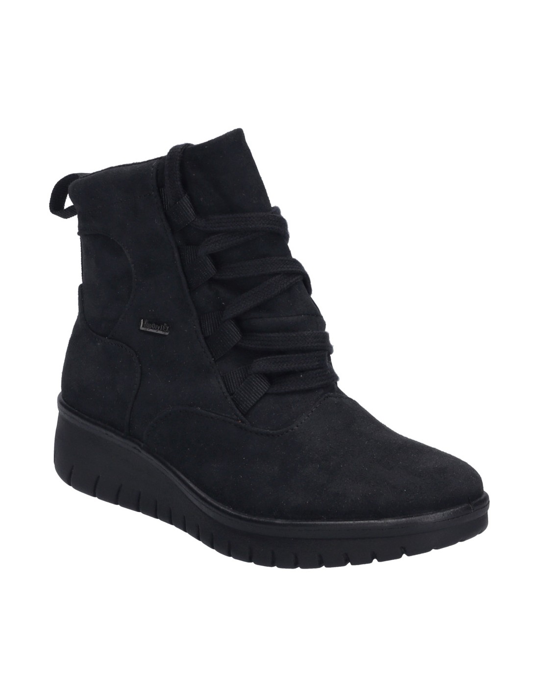 Descripción: Botín mujer Josef Seibel Calais-08 en suave microfibra negra con membrana impermeable Top Dry tex, resistente al viento y transpirable. Plantilla extraible. Ajuste con cordones. Suela ligera, flexible y antideslizante.