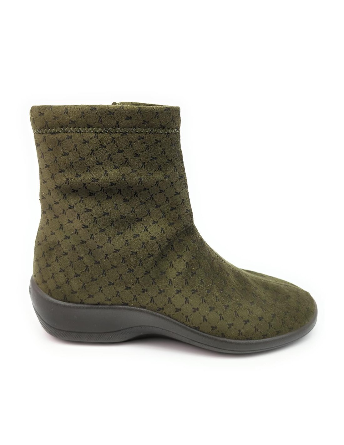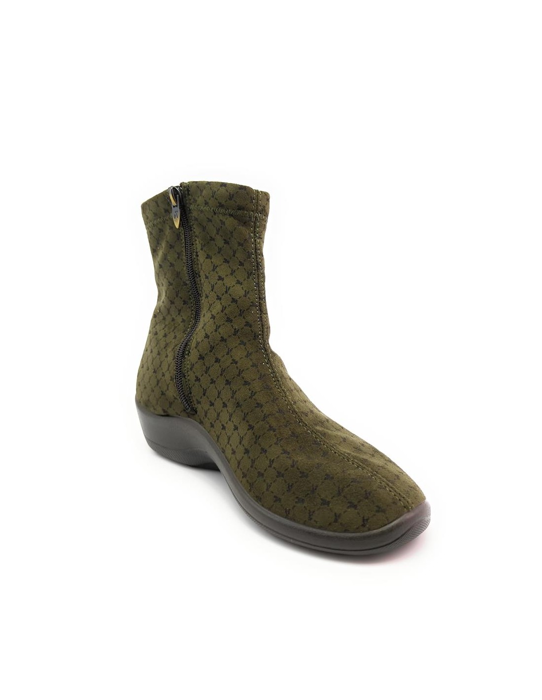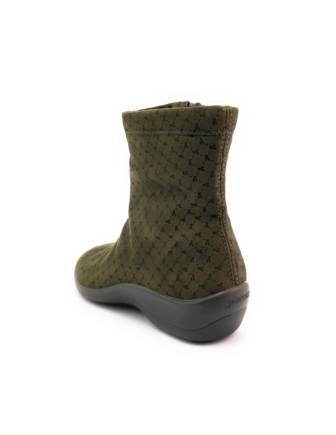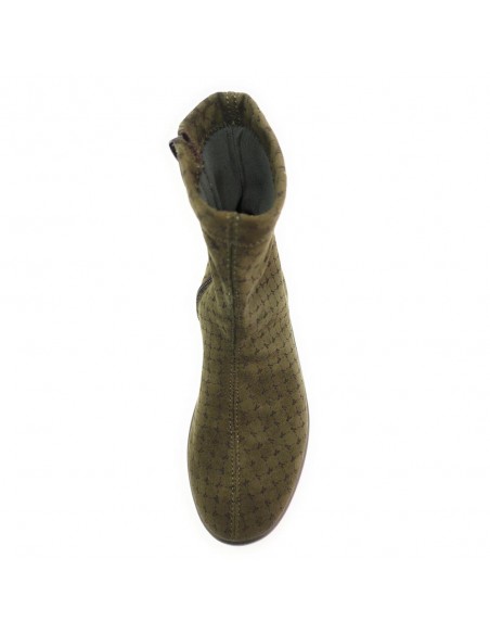 Descripción: Botín mujer Arcopedico JASPER de licra kaki elástica aspecto nubuck, reciclada, vegana e hidrofugada. Ajuste cremallera. Piso de poliuretano inyectado con sistema de doble arco lateral para mejorar el apoyo.