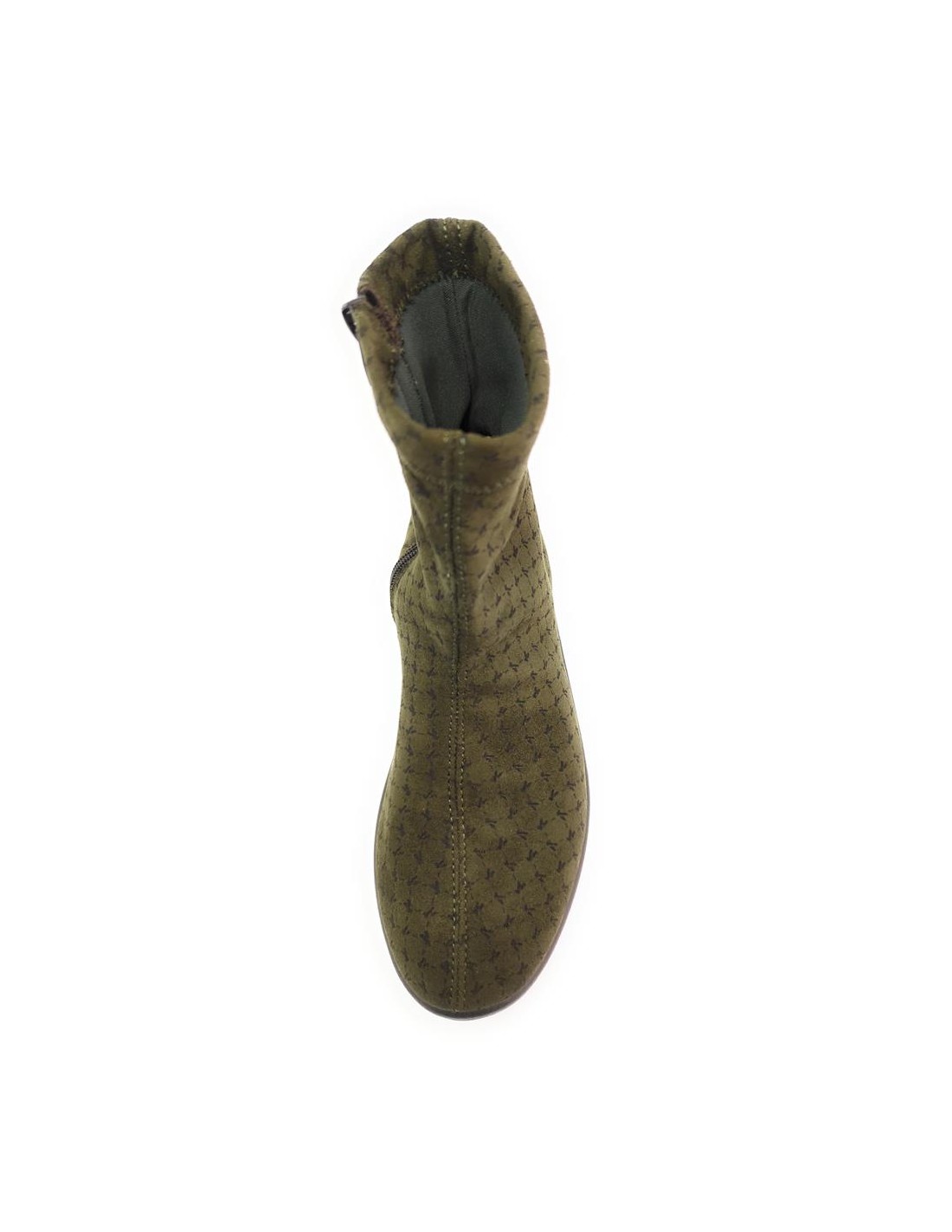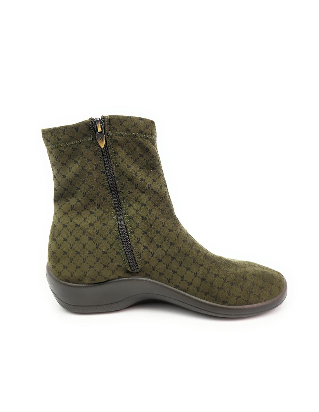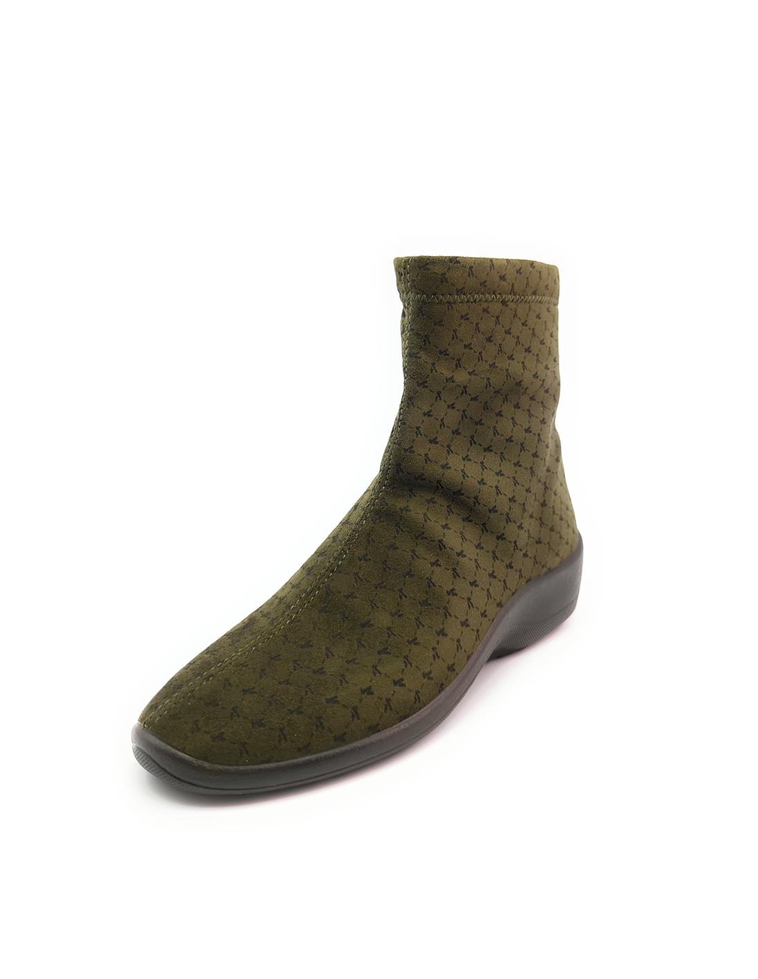 Descripción: Botín mujer Arcopedico JASPER de licra kaki elástica aspecto nubuck, reciclada, vegana e hidrofugada. Ajuste cremallera. Piso de poliuretano inyectado con sistema de doble arco lateral para mejorar el apoyo.