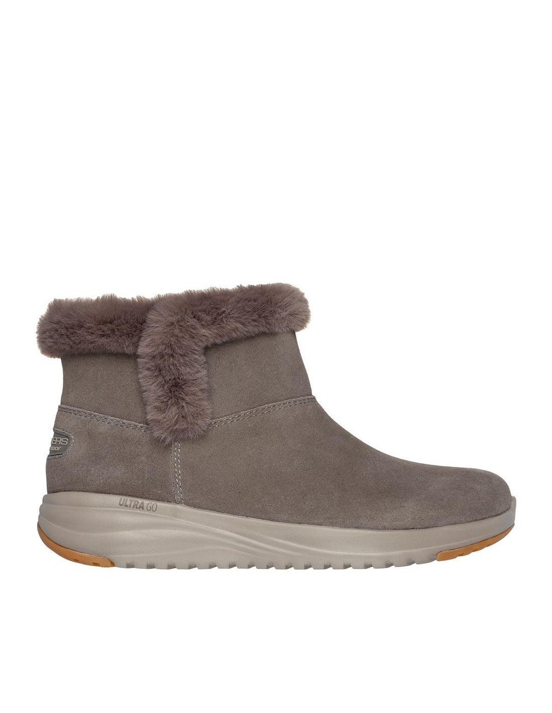 Descripción: Botín casual mujer Skechers ON-THE-GO STELLAR - COZY STEP en serraje taupe y detalle de pelo. Media suela 5Gen y plantilla Goga Mat mejora la adaptación al caminar. Amortiguación ULTRA GO®