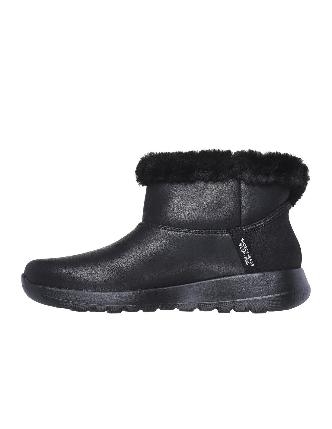 Descripción: Botín casual mujer Skechers ON-THE-GO STELLAR - COZY DREAM en tejido negro y detalle de pelo. Media suela 5Gen y plantilla Goga Mat mejora la adaptación al caminar. Amortiguación ULTRA GO® Hands Free Slip-ins®. Fáciles de poner con la tecnología Heel Pillow™  mantiene el pie en su sitio.