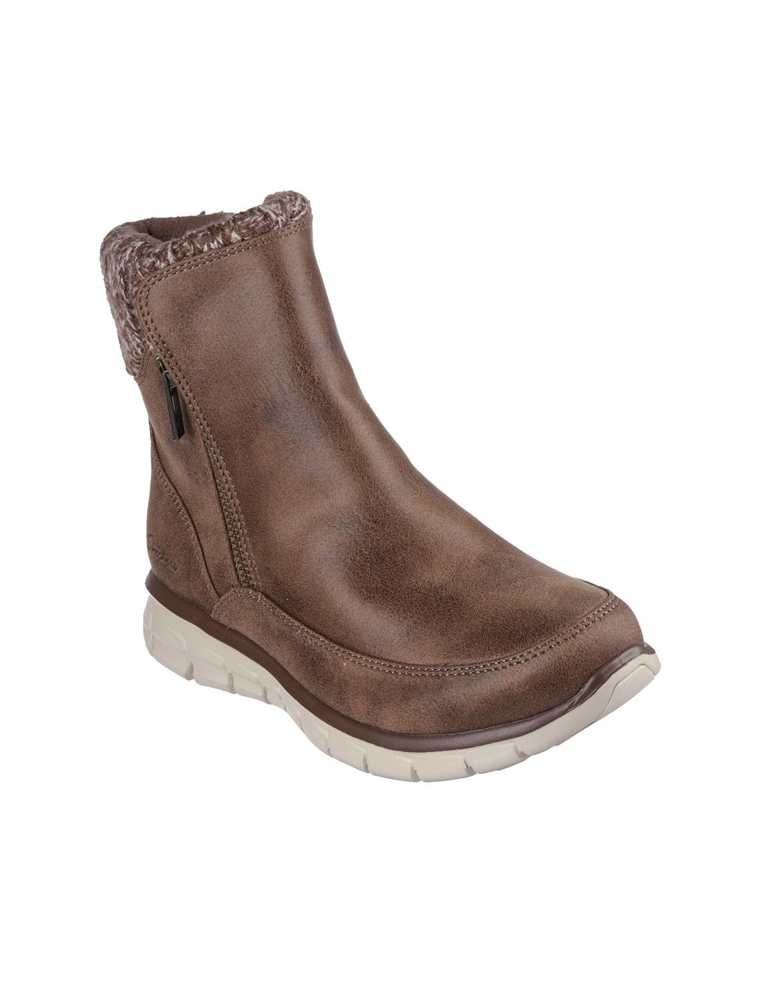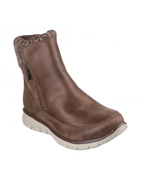 Descripción: Botín mujer Skechers SYNERGY LOVELY COLLAB en tejido con aspecto piel envejecida marrón. Cuello lana. Plantilla de Memory-Foam adaptable refrigerada por aire. Entre suela con Dual Lite amortiguadora.