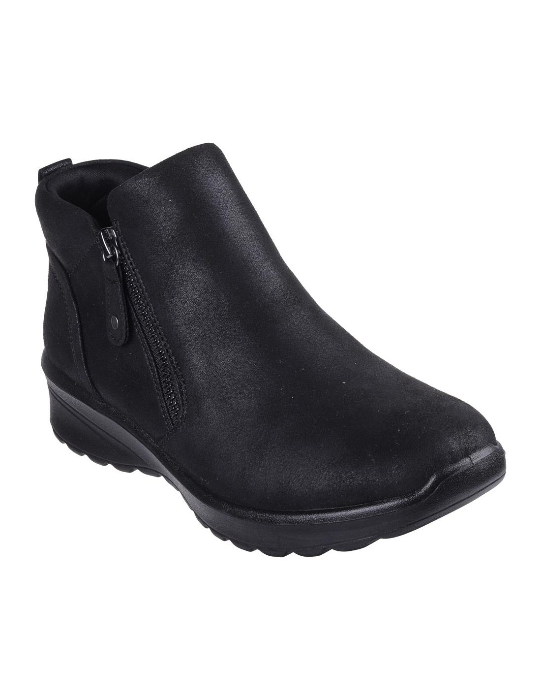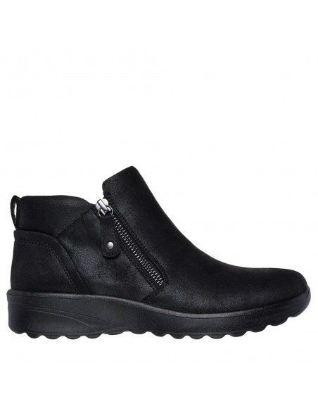 Descripción: Botín casual mujer Skechers LOVELY VIBE - FALL IN BLOOM en tejido aspecto piel lisa negra. Ajuste cremallera. Plantilla Air Colded Memory Foam amortiguadora.