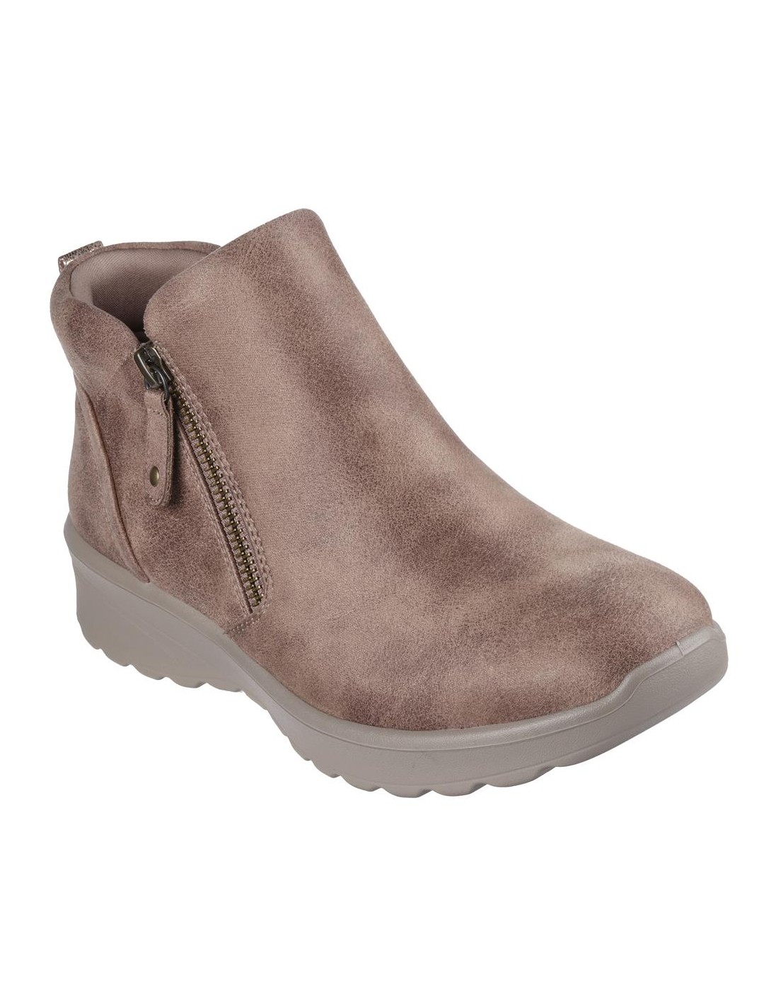 Descripción: Botín casual mujer Skechers LOVELY VIBE - FALL IN BLOOM en tejido aspecto piel lisa taupe. Ajuste cremallera. Plantilla Air Colded Memory Foam amortiguadora.