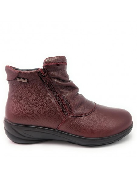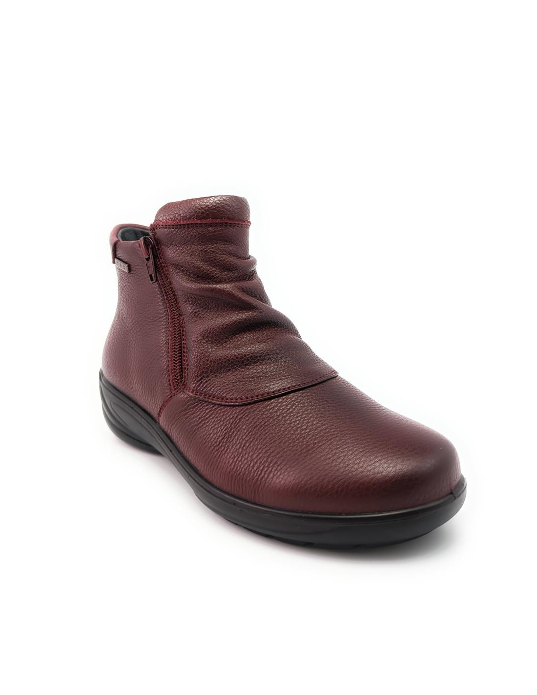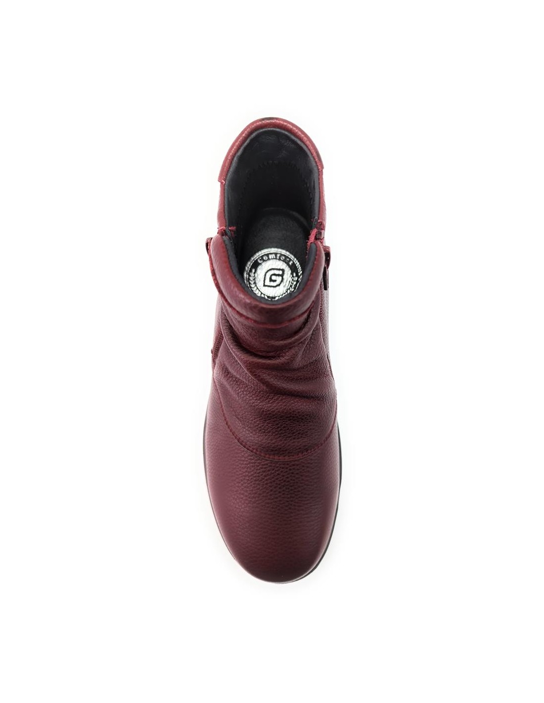 Descripción: Botín mujer de G Comfort modelo P-9521 en suave piel roja con detalle arrugado y doble cremallera. Con membrana impermeable y transpirable. Cómoda cuña ligera de poliuretano inyectado antideslizante.