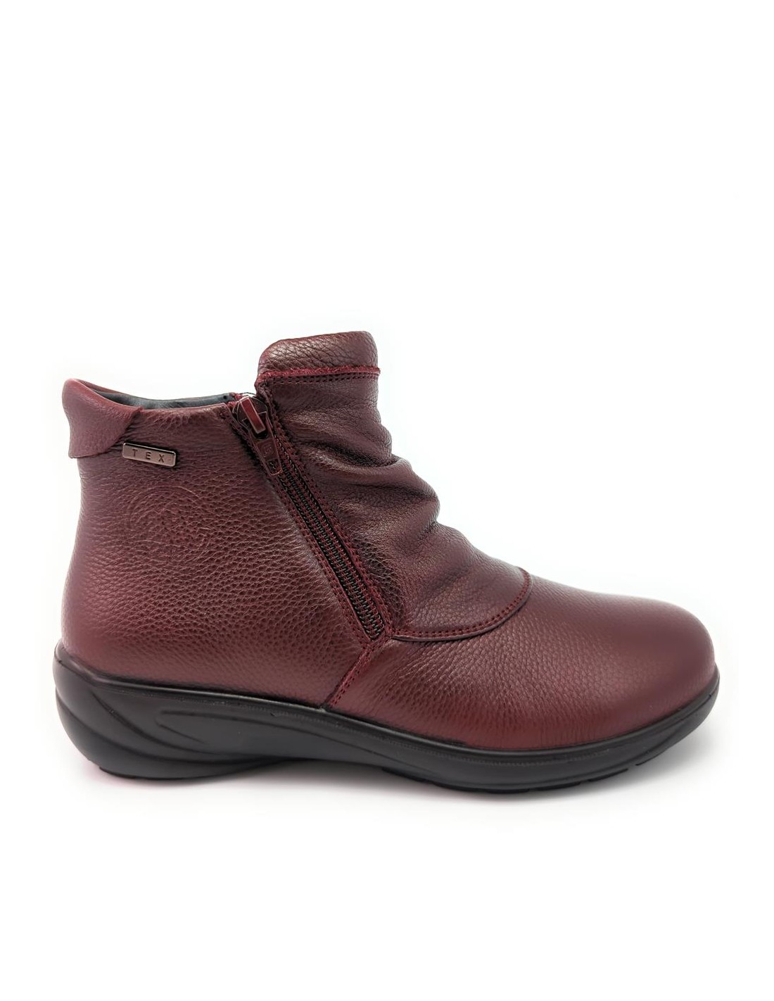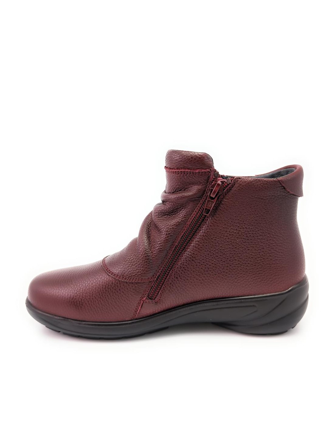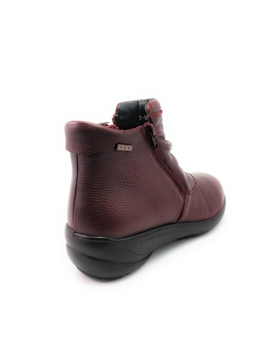 Descripción: Botín mujer de G Comfort modelo P-9521 en suave piel roja con detalle arrugado y doble cremallera. Con membrana impermeable y transpirable. Cómoda cuña ligera de poliuretano inyectado antideslizante.
