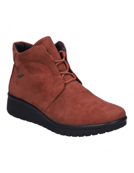 Descripción: Botín mujer Josef Seibel Calais-80 en suave microfibra Amaretta roja con membrana impermeable Top Dry tex, resistente al viento y transpirable. Plantilla extraible. Ajuste con cordones. Suela ligera, flexible y antideslizante.