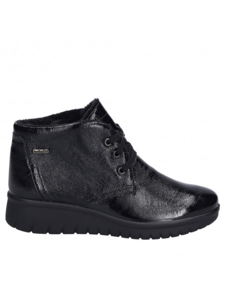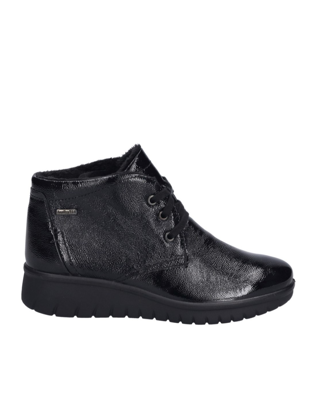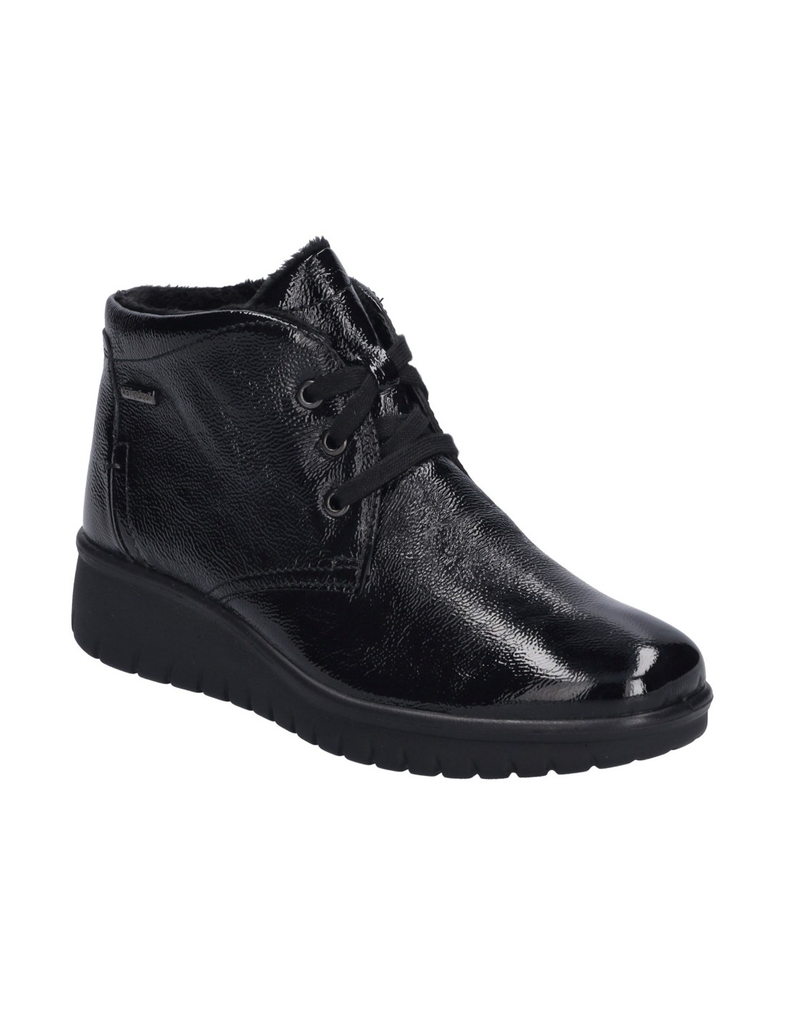 Descripción: Botín mujer Josef Seibel Calais-80 en suave charol negro con membrana impermeable Top Dry tex, resistente al viento y transpirable. Plantilla extraible. Ajuste con cordones. Suela ligera, flexible y antideslizante.