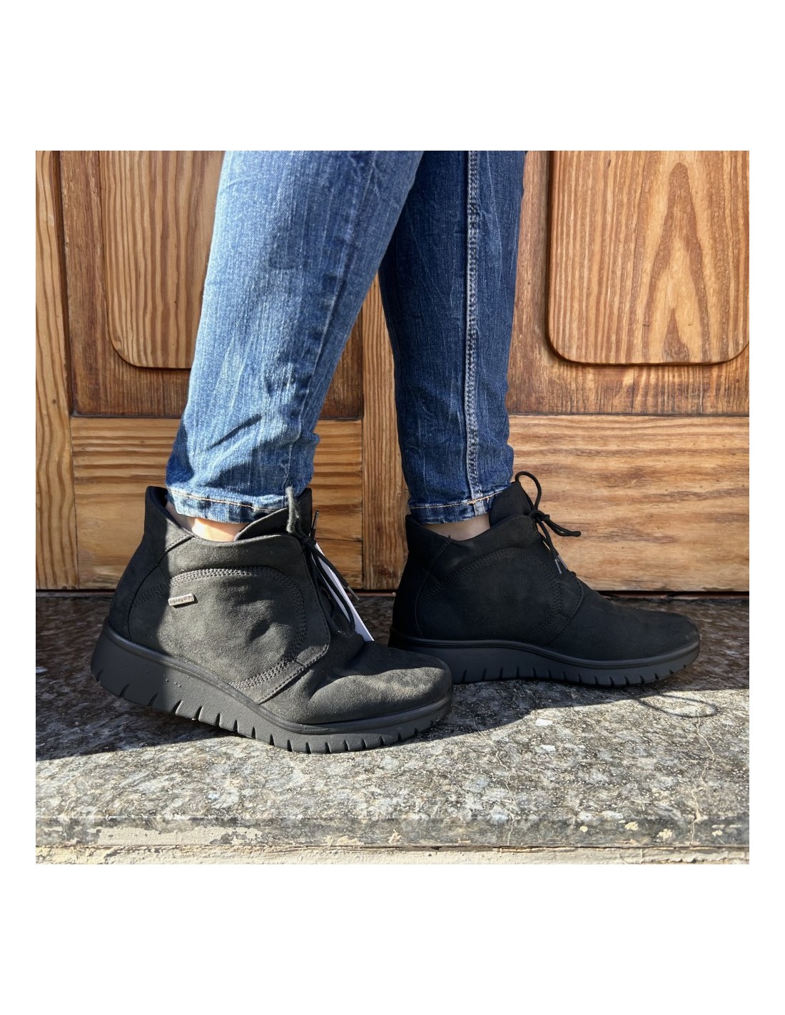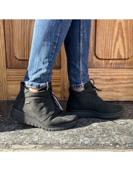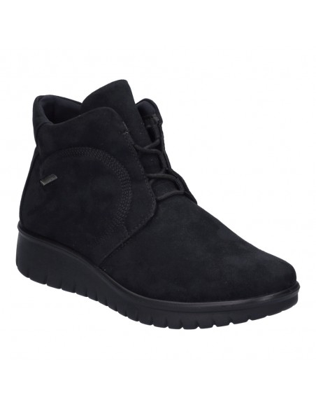 Descripción: Botín mujer Josef Seibel Calais-80 en suave microfibra negra con membrana impermeable Top Dry tex, resistente al viento y transpirable. Plantilla extraible. Ajuste con cordones. Suela ligera, flexiblle y antideslizante.