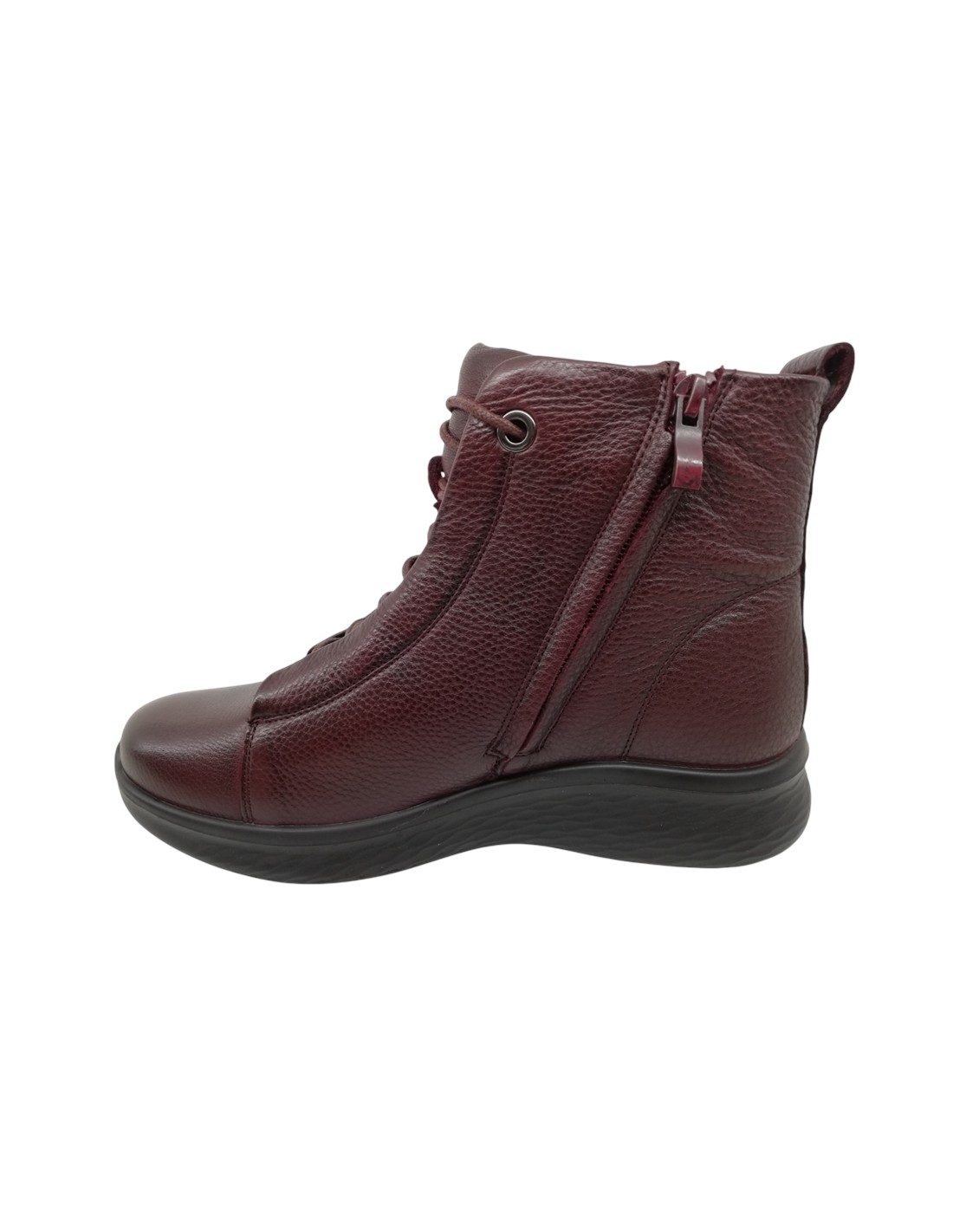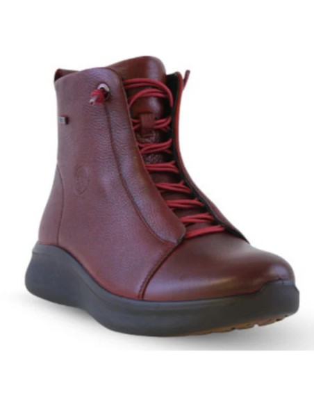 Descripción: Botín mujer de G Comfort modelo 816-R en suave piel roja. Ajuste cremallera y cordones elásticos. Con membrana impermeable y transpirable. Cómoda cuña ligera de poliuretano inyectado antideslizante
