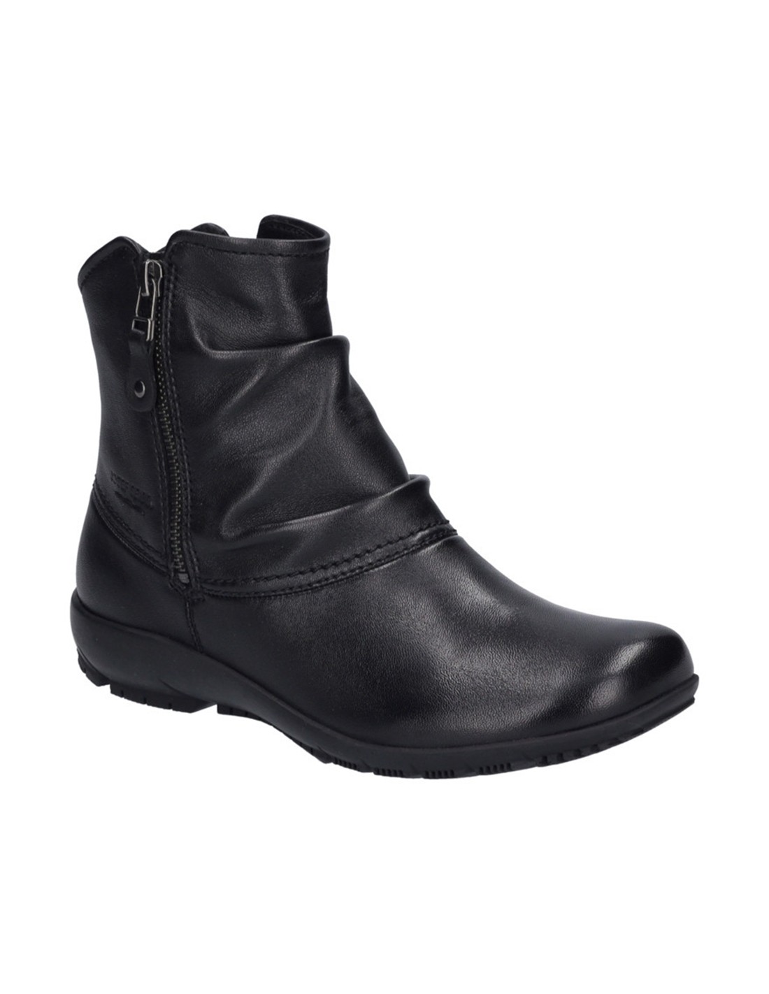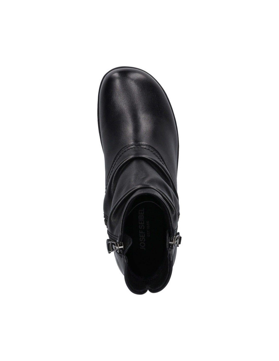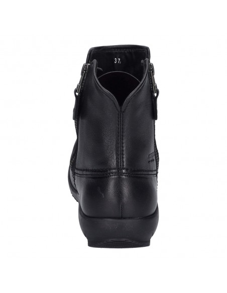 Descripción: Botín mujer Josef Seibel Calais-01 en suave piel negra con ligeras arrugas. Ajustable con cremallera. Plantilla anatómica móvil. Suela amortiguadora, flexible, aislante y antideslizante.